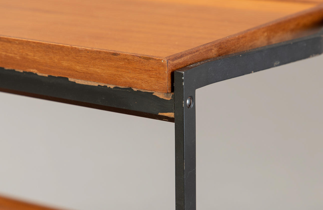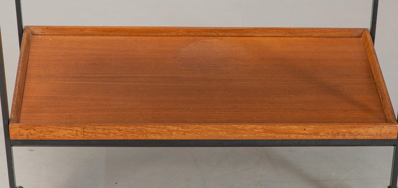 Servierwagen / Barwagen von Opal Kleinmöbel aus den 1960er Jahren. Konstruktion aus Stahl und Teakholz. Oberes Tablett abnehmbar.
