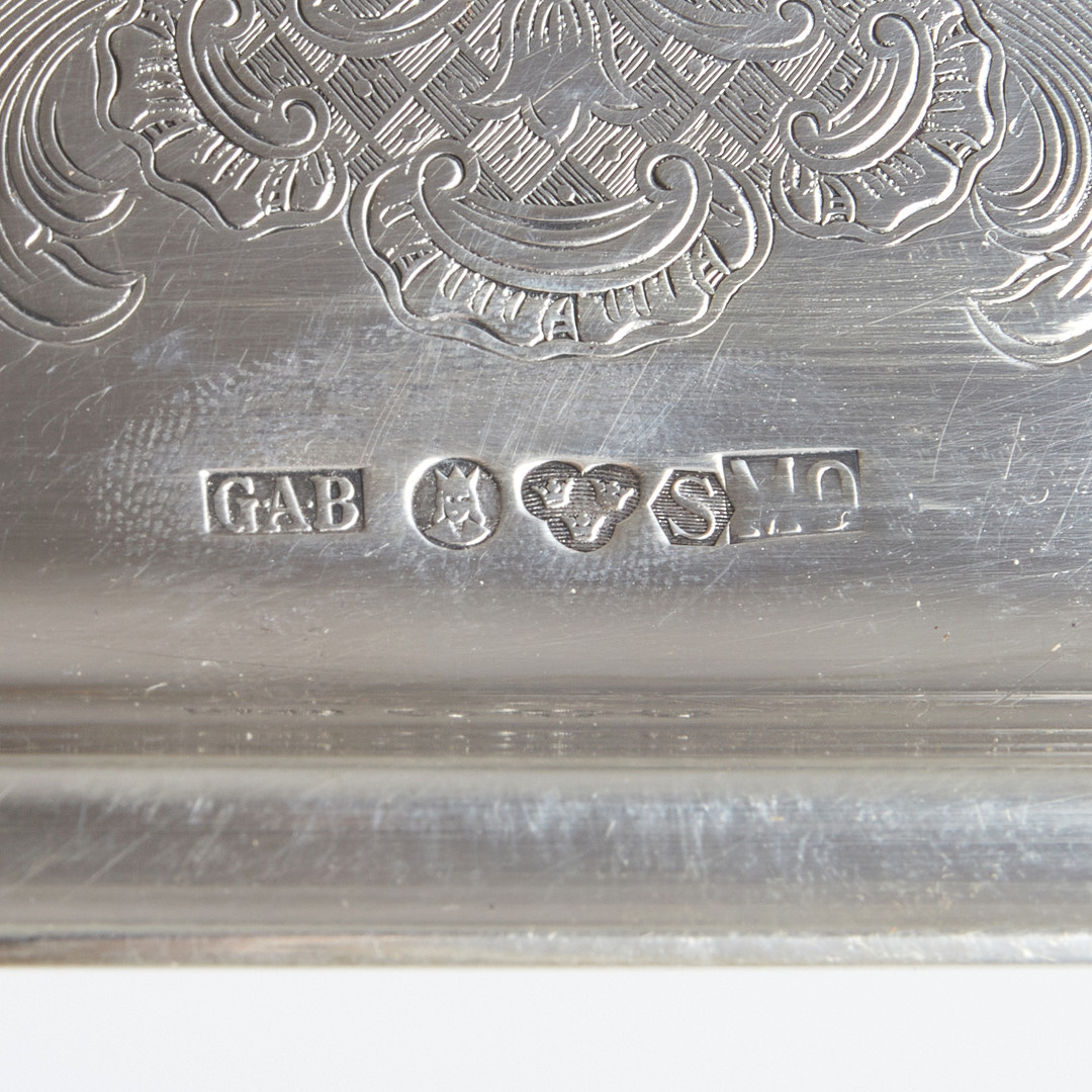 2267135. Tablett, Silber, mit graviertem Dekor.