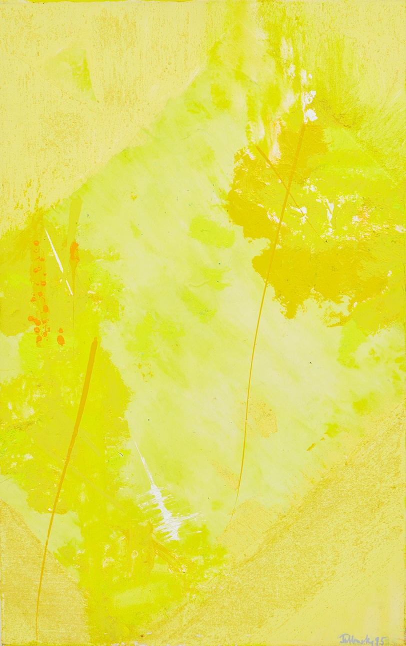 Hilla Jablonsky (1922-2019), Gemälde, 'Sonnentag', Mischtechnik auf Leinwand, 1995. Abstrakte Komposition in Gelb, unten rechts signiert und datiert, sowie rückseitig bezeichnet, 95x60cm.