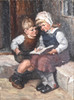 Sitzendes Kind. Unterzeichnet. 80 x 60 cm.