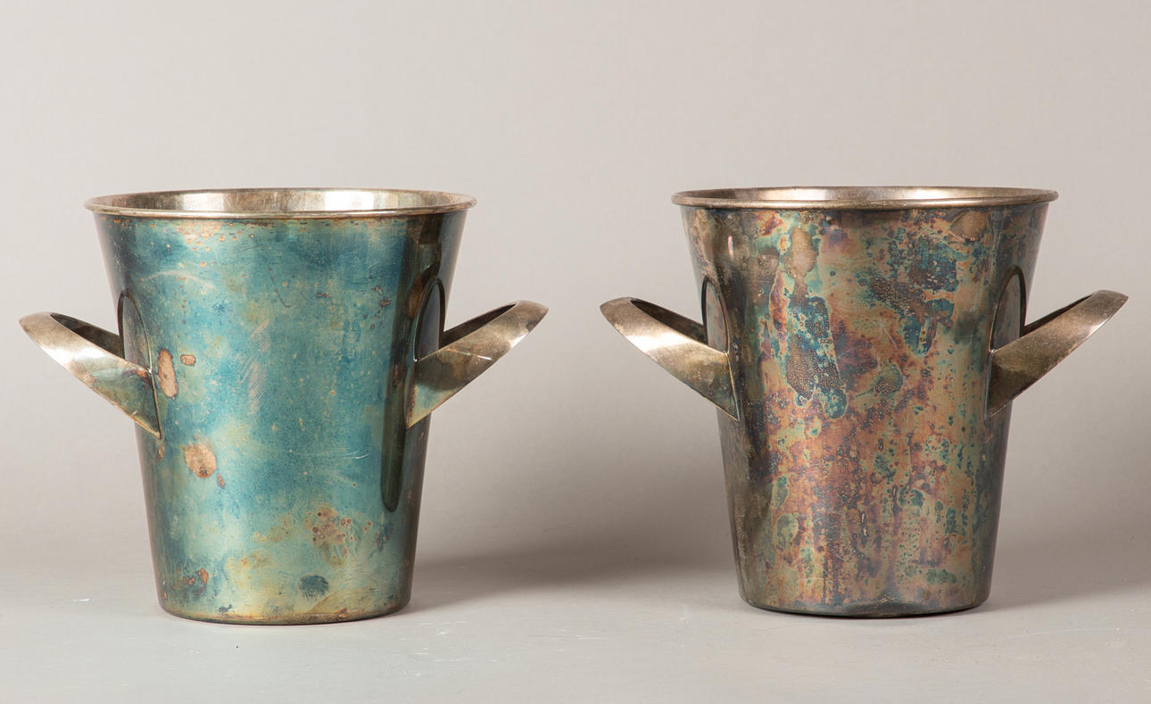 2274483. 2 WMF Wagenfeld Sektkühler, versilbert.