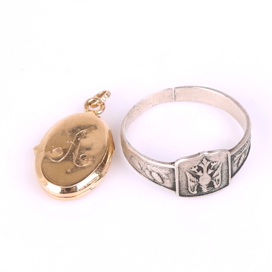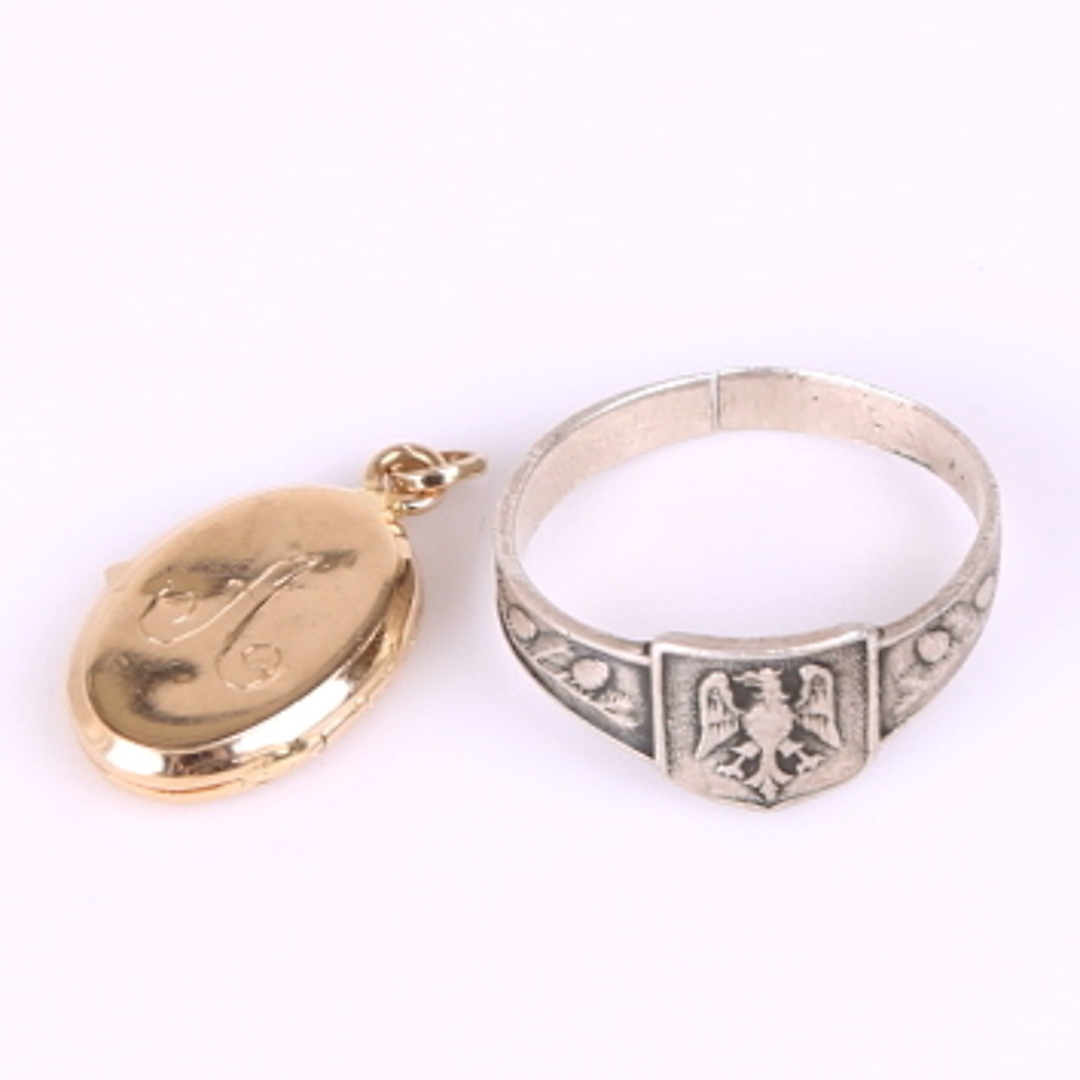227743. MEDAILLON, 18 Karat Gold, RING Silber.