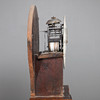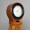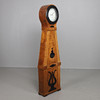 Standuhr, Gehäuse aus geflammter Birke mit geschwärzten Details. Zifferblatt markiert AAS und Mora Höhe ca. 199 cm.