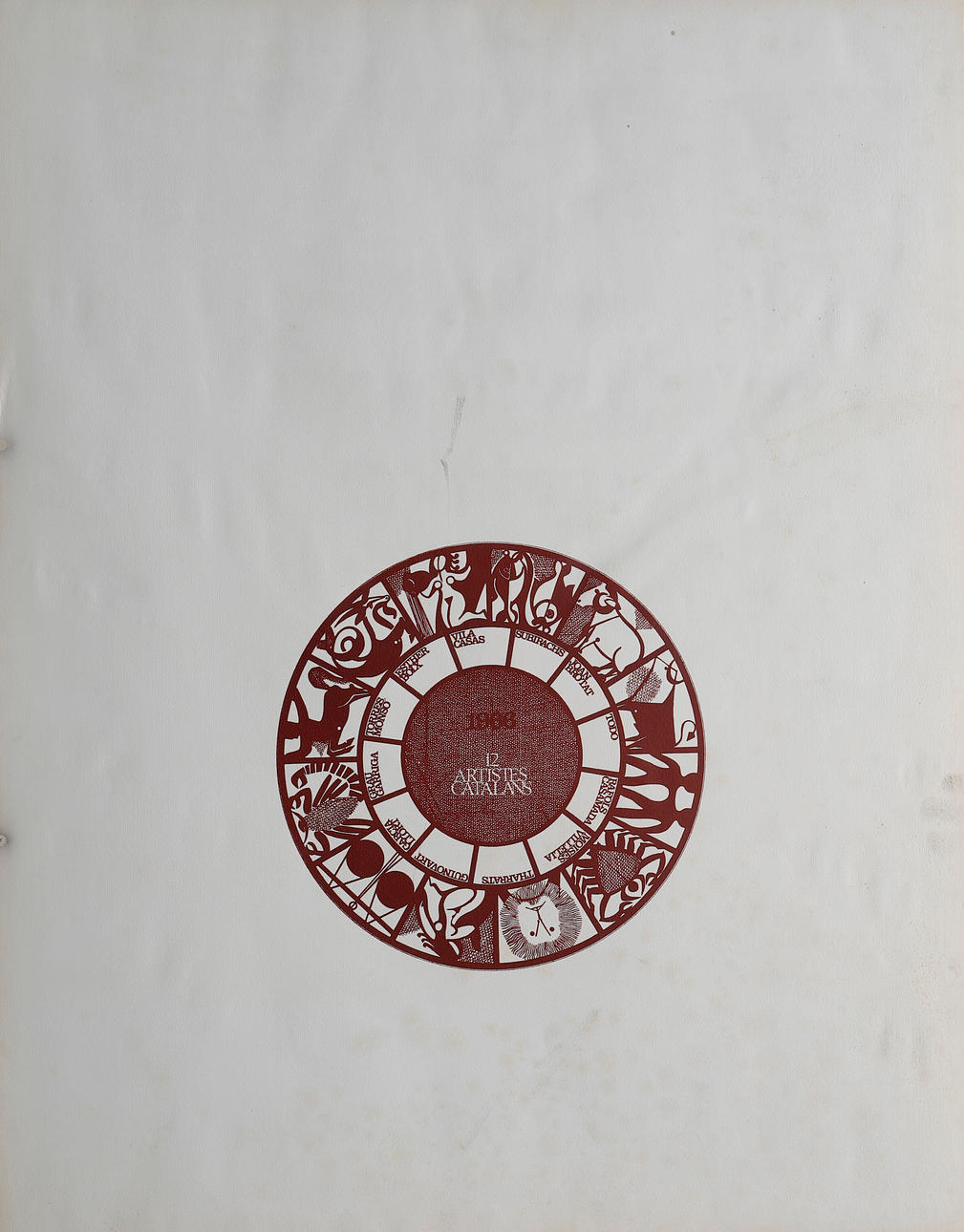 Kupferstich-Suite (eine Radierung, ein Holzschnitt, eine Lithographie und neun Linolschnitte). Hergestellt in den Guada-Werkstätten in Barcelona im Jahr 1965 von Esther Boix, Joan Brotat, Garcia-Llort, Grau-Garriga, Guinovart, Ràfols Casamada, Subirachs, Tharrats, Todó, F. Torres Monsó, Joan Vila Casas und Moisès Villèlia. Jedes Werk ist von seinem Autor mit Bleistift signiert. Exemplar nummeriert 381/900. Im Redaktionsordner.