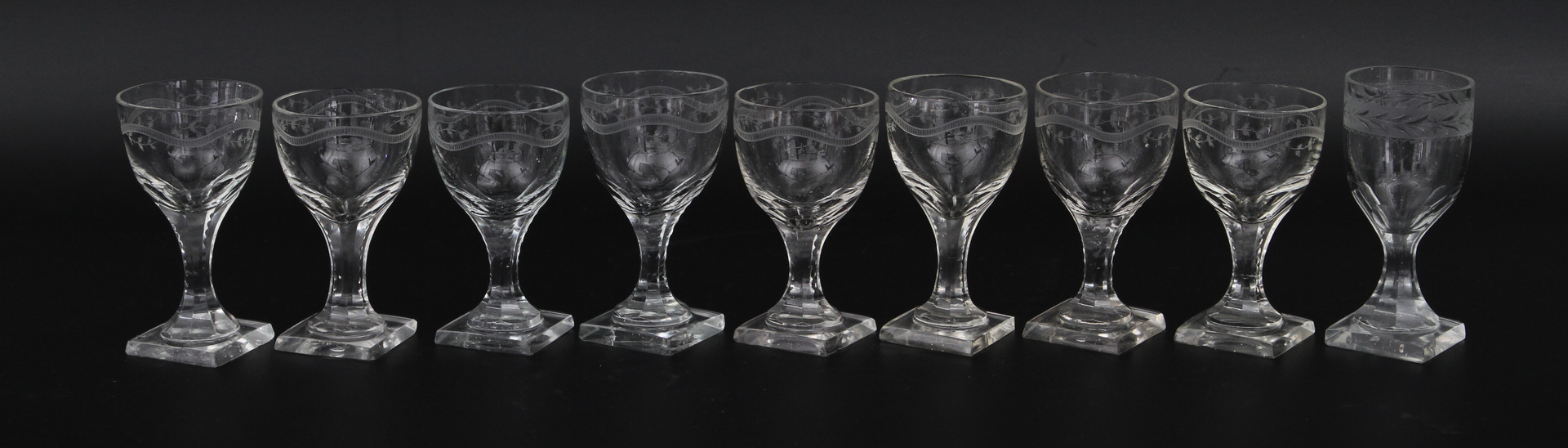 22873. SCHNAPPGLAS, 9 Stück, 1800er.