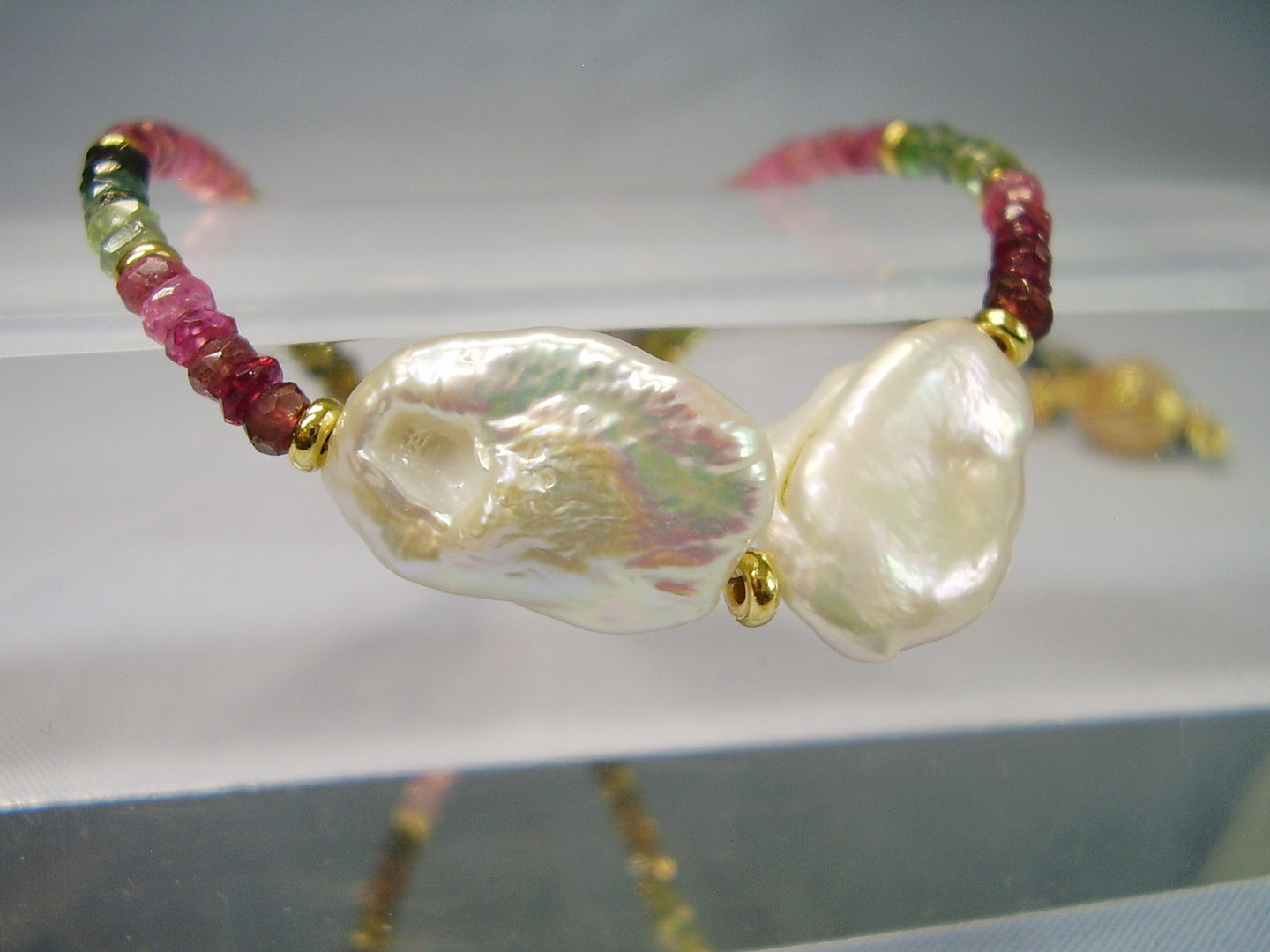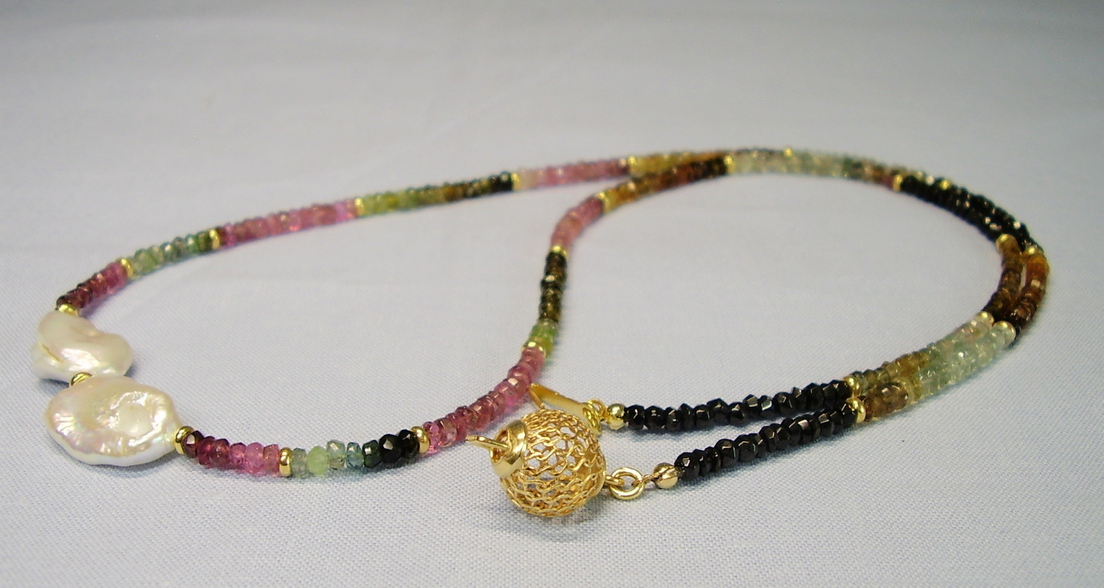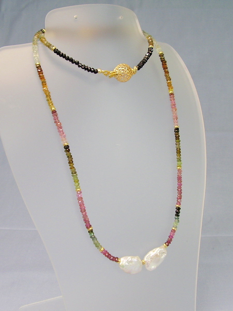 2291174. multicolor TURMALIN KETTE mit Keshi-Perlen.