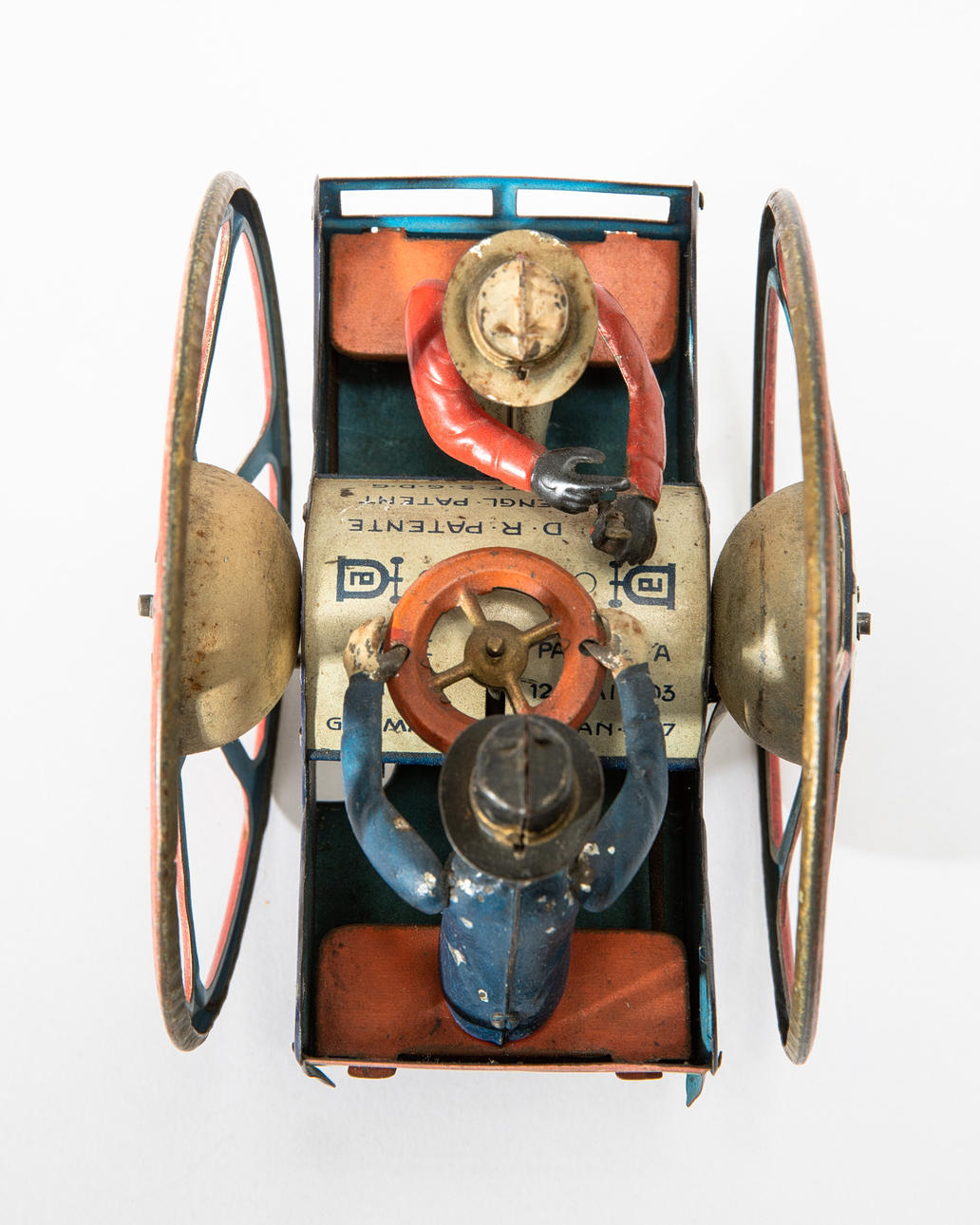 Unterseitig Aufziehmechanismus. H. 12,3 cm. Auf dem Blech