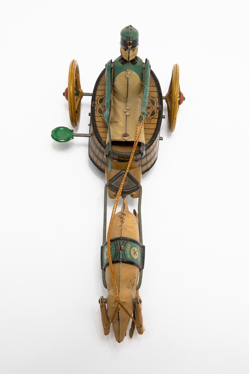 Schweinereiter. Marke Stock, Blechspielzeug. Made in Germany. ca. 1930er Jahre. 11 x 21 x 10 cm.