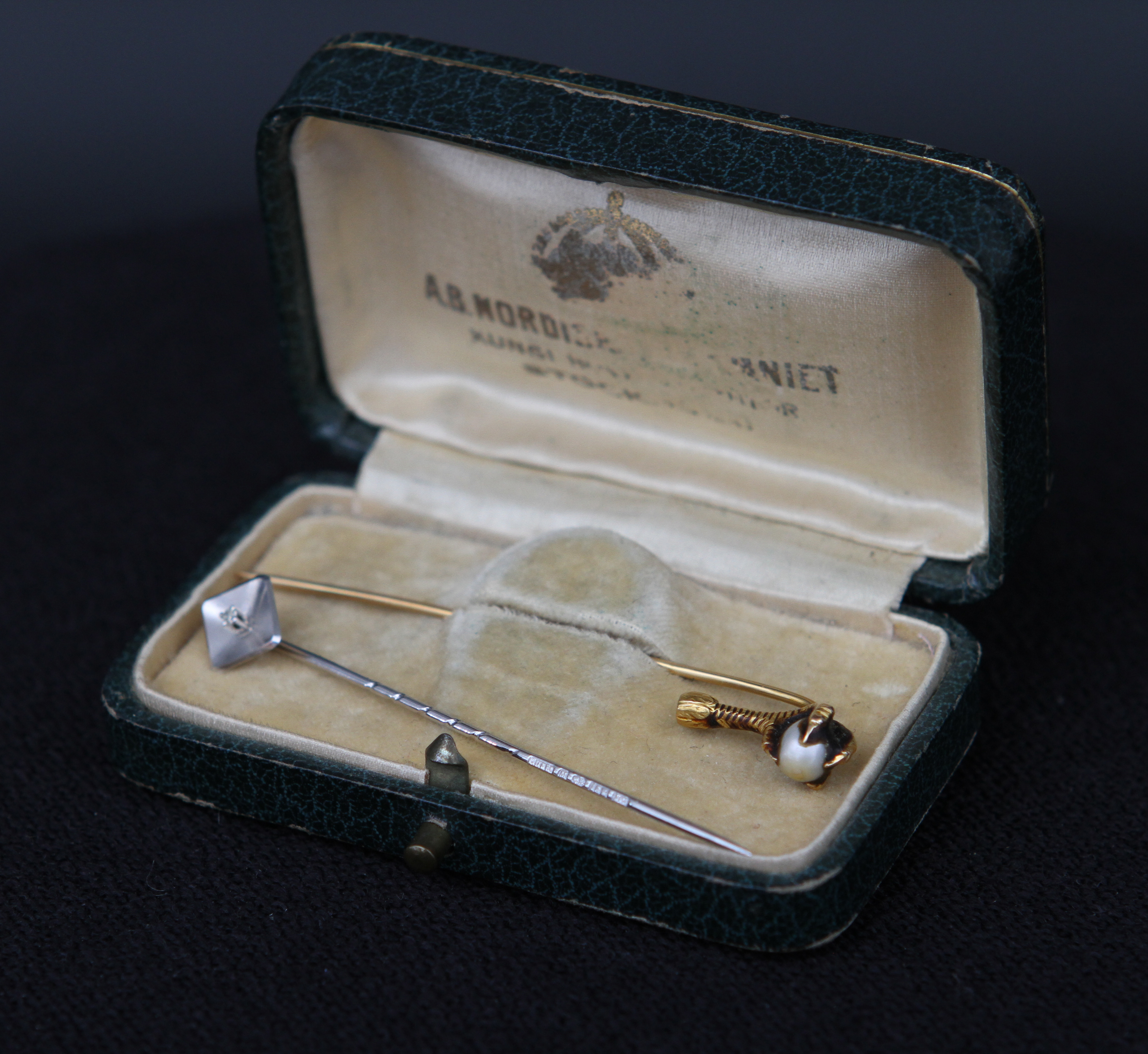 22927. BINDUNGSNADELN, 2 Stück, 18 Karat Gold.