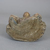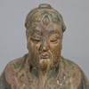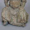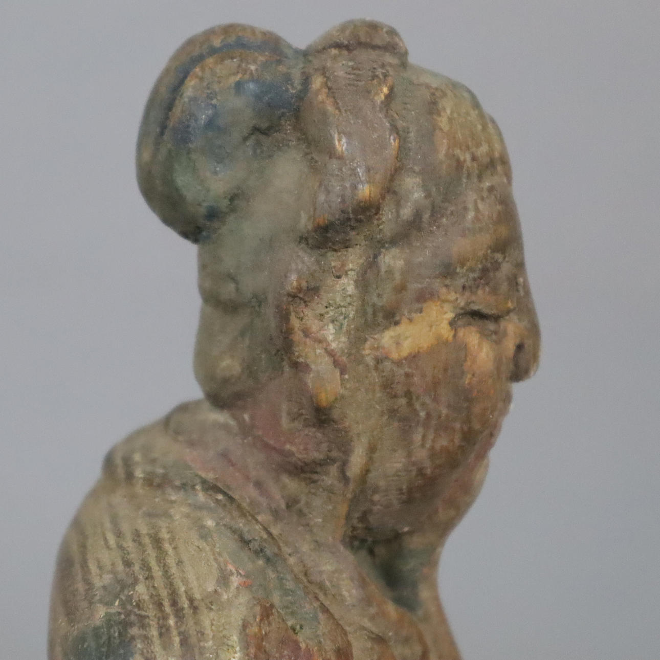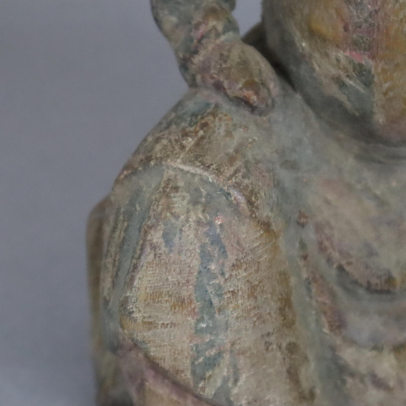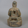 in breitbeiniger Sitzhaltung thronend, verso Aushöhlungen, H. ca.25,5 cm.
