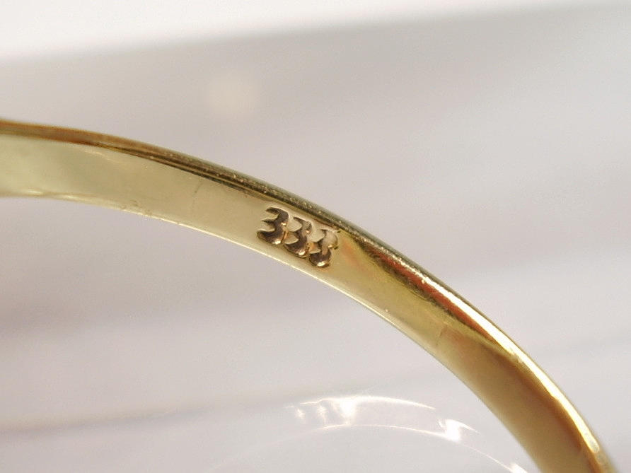 Der elegante Ring ist in Gelbgold 333 = 8 Karat gearbeitet und so punziert.