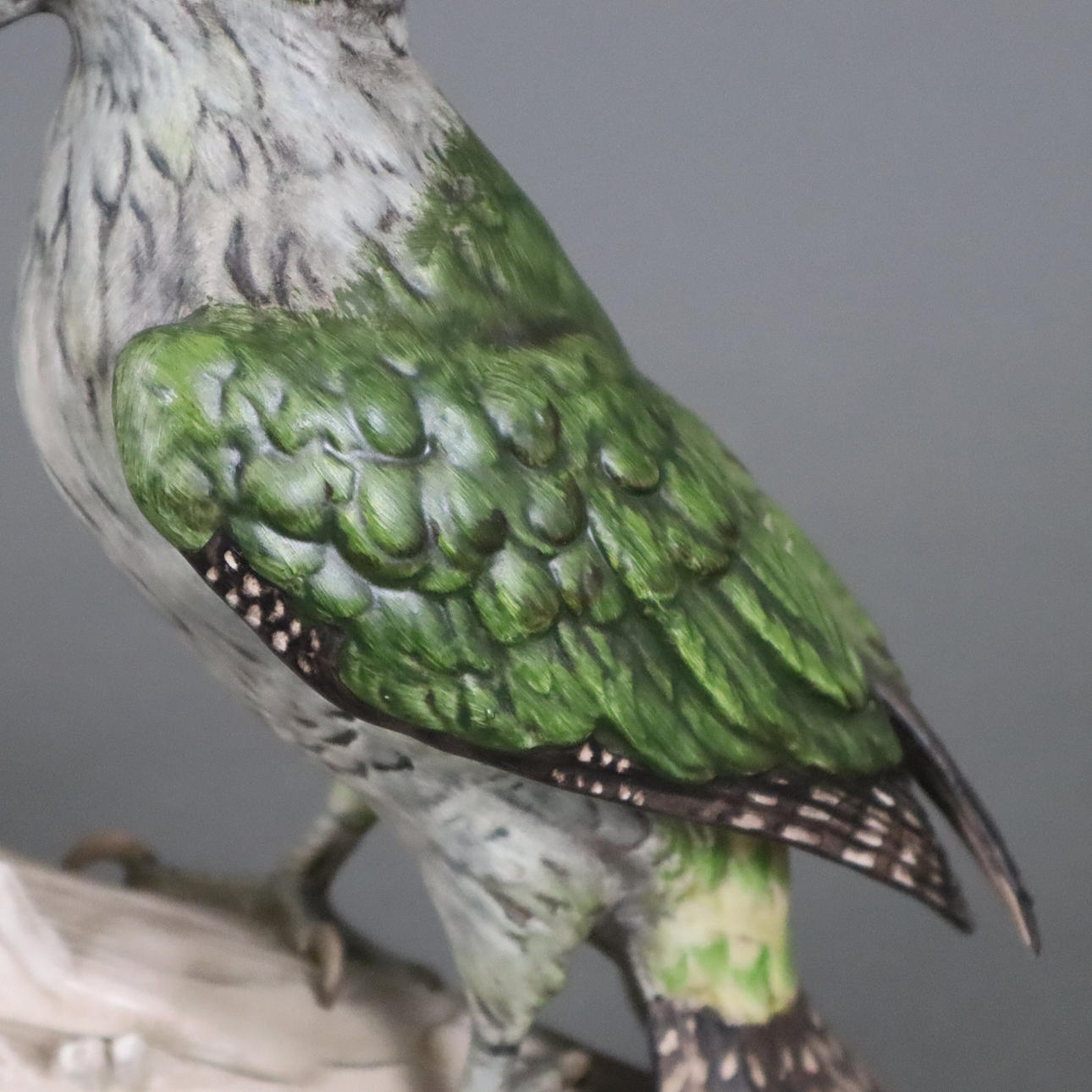 Entwurf von G. Bochmann (1975), Biskuitporzellan, polychrom bemalt, auf Baumstumpfsockel signiert "G.Bochmann", Boden mit Manufakturmarke 1979-1990, Jahr '1975' und Modellnummer 38 010 28, H.ca.28cm.