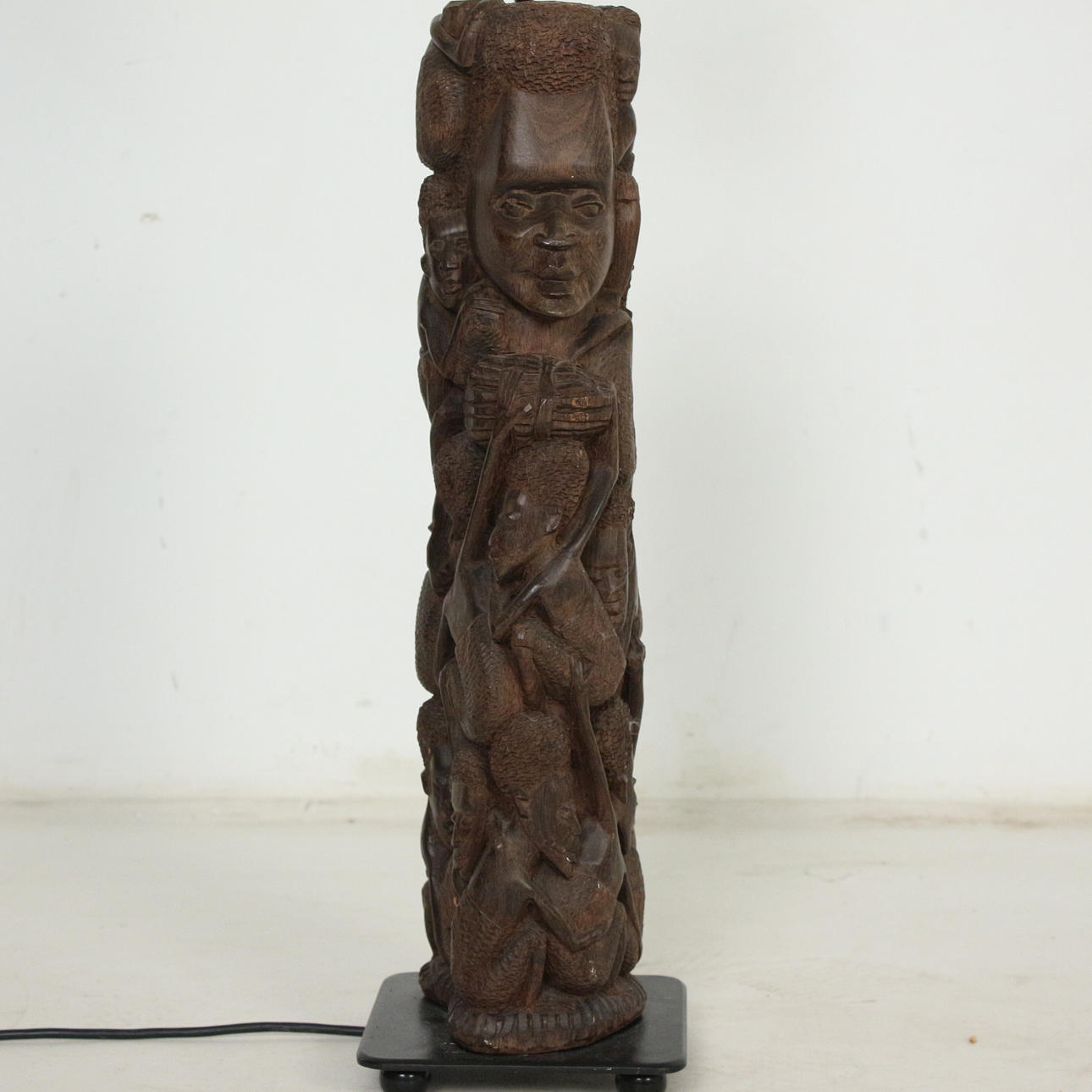 Lampe/ Tischlampe, Lampenfuß aus Holz geschnitzt, Afrika, Maße ca.: H. 85 cm, Ø 36 cm.