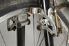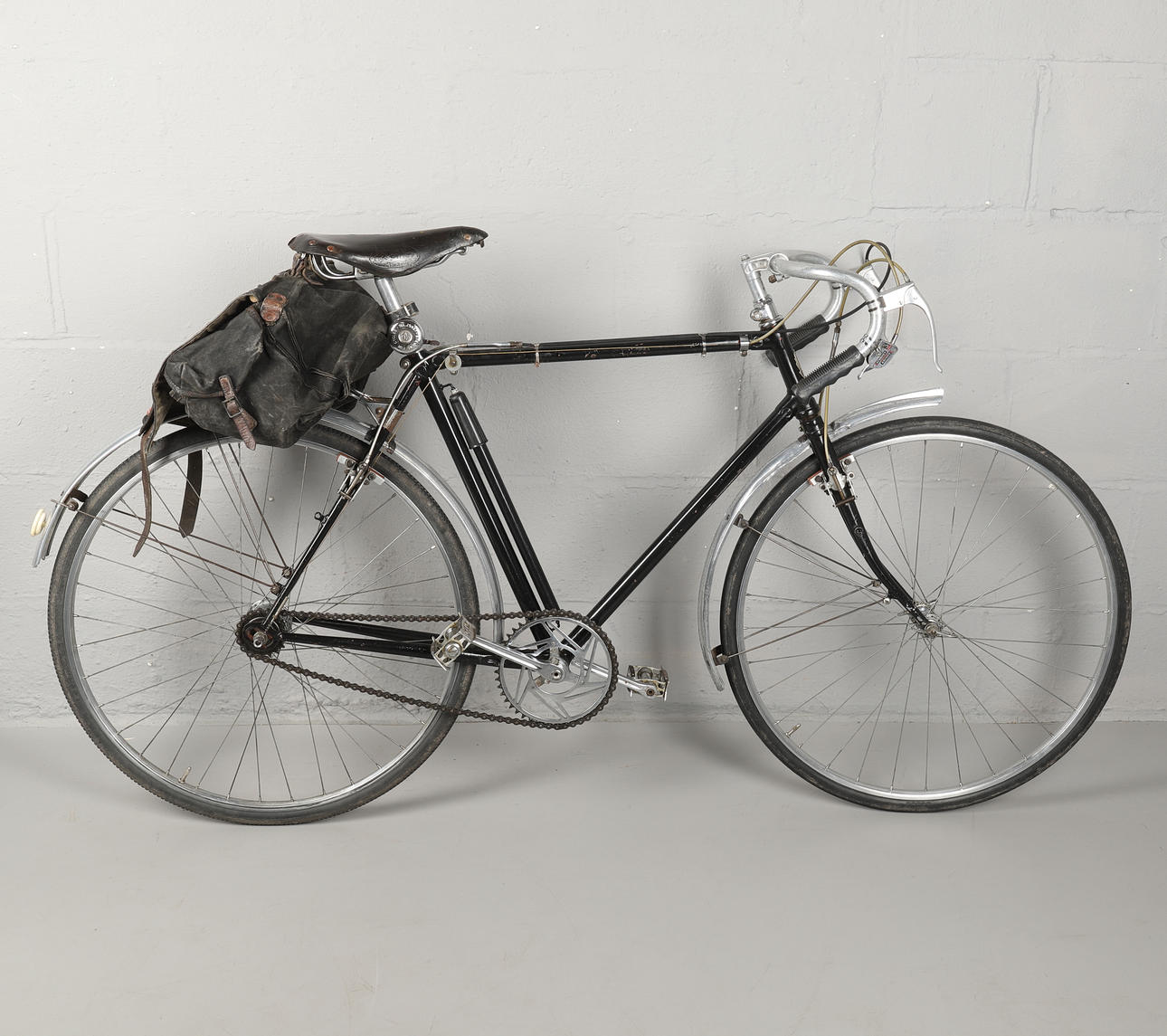 Spezifikation der 1950er: Alu-Resilion-Cantilever-Bremsen mit roten Blöcken, GB-Hebeln, Alu-Stream und Lenker Alu-26-Zoll-Felgen, 26 x 1 1/4-Reifen, Sturmey-Archer-Nabe mit 3 Gängen. Brooks Ledersattel.