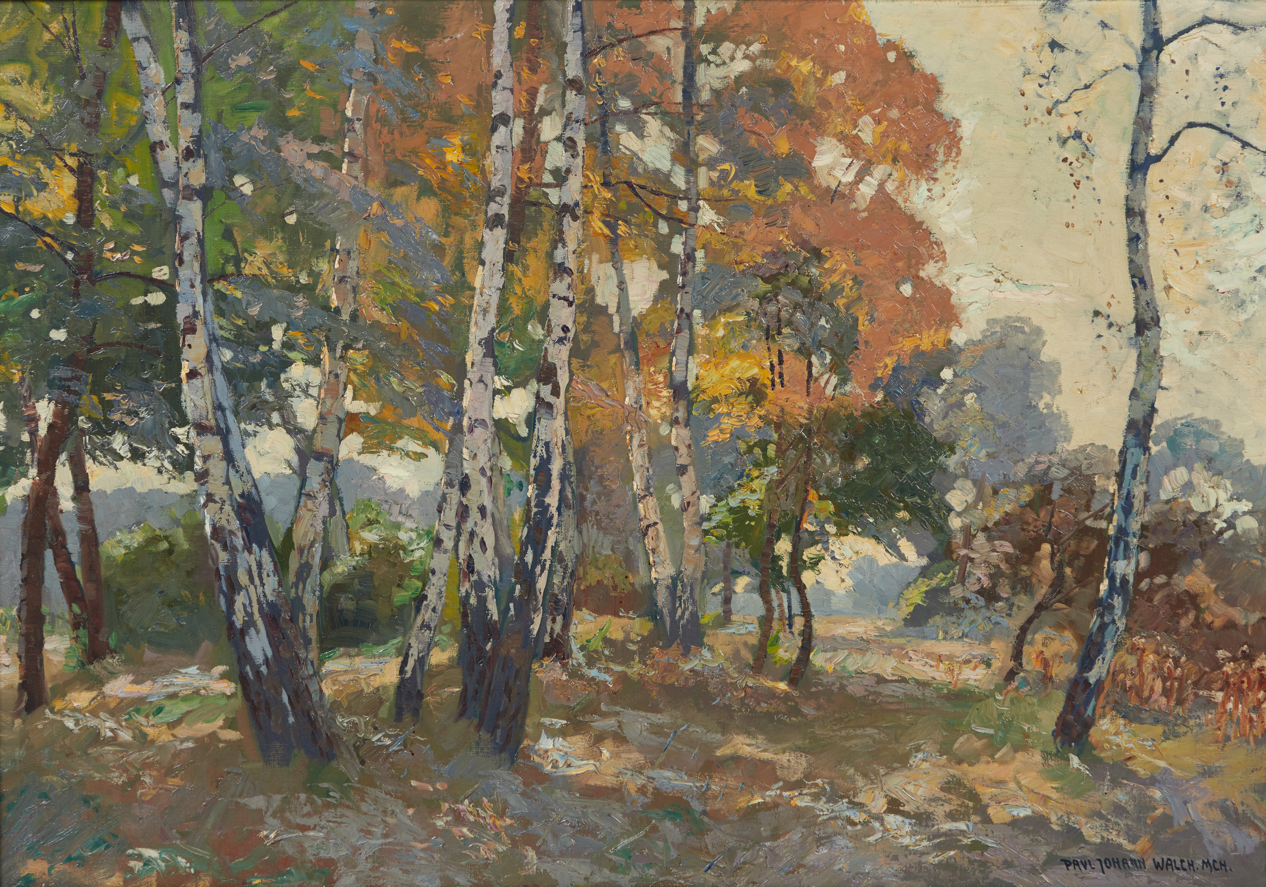 2310777. A. HÜBNER. Gemälde, Birken am Wasser.