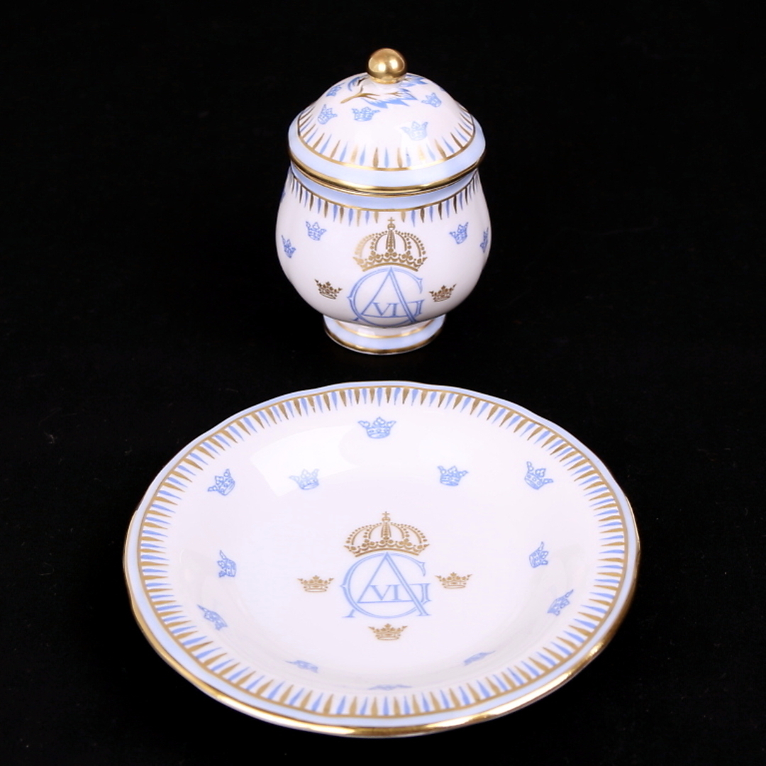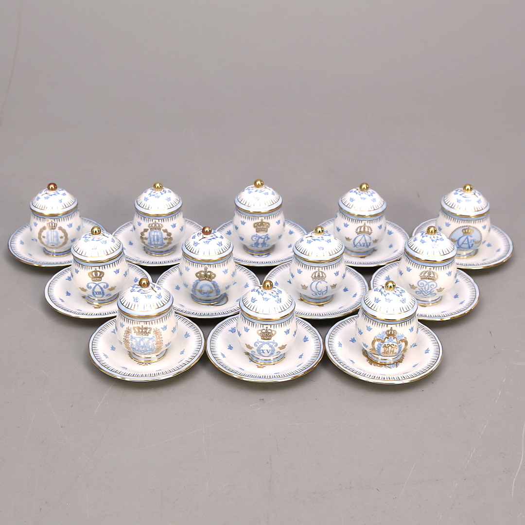231605. CREMEKOPPAR, 12 Stück, Grispholm, Kungamonogram.