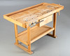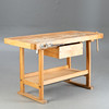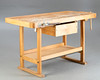 Hobelbank. Hartholzgestell in Kufenform, 2 Spannzangen, 1 Schublade und Ablage.