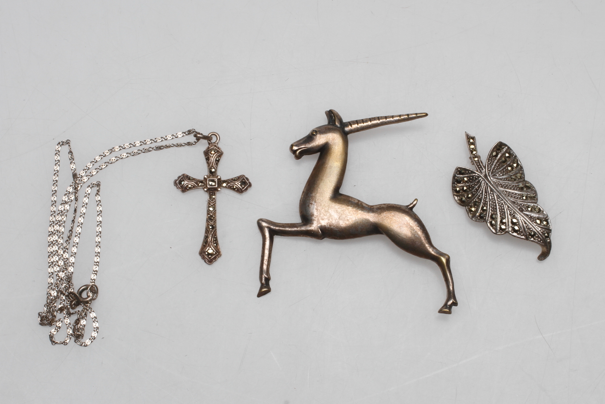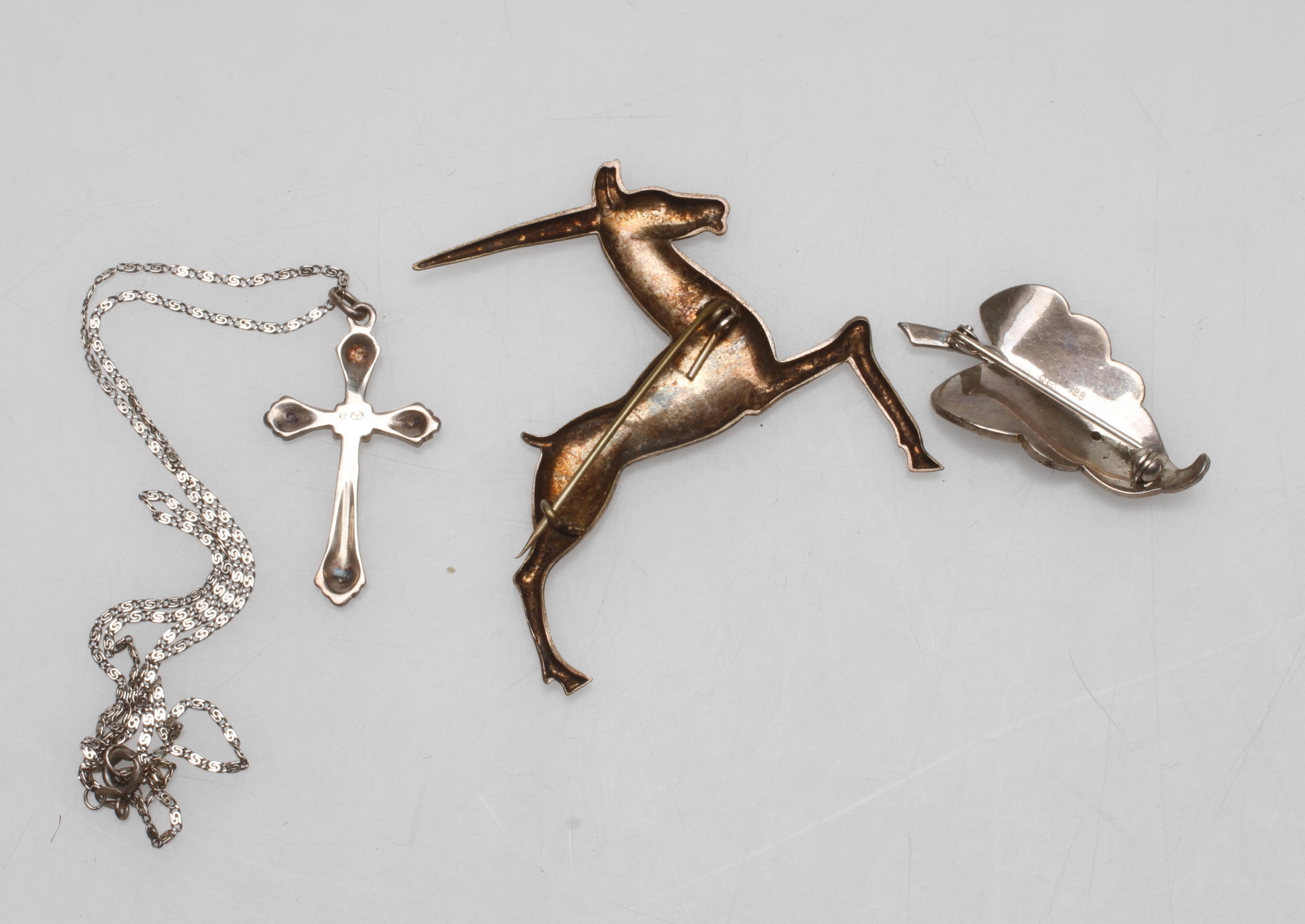 232401. Broschen, 2 Stück und Halskette, Silber.