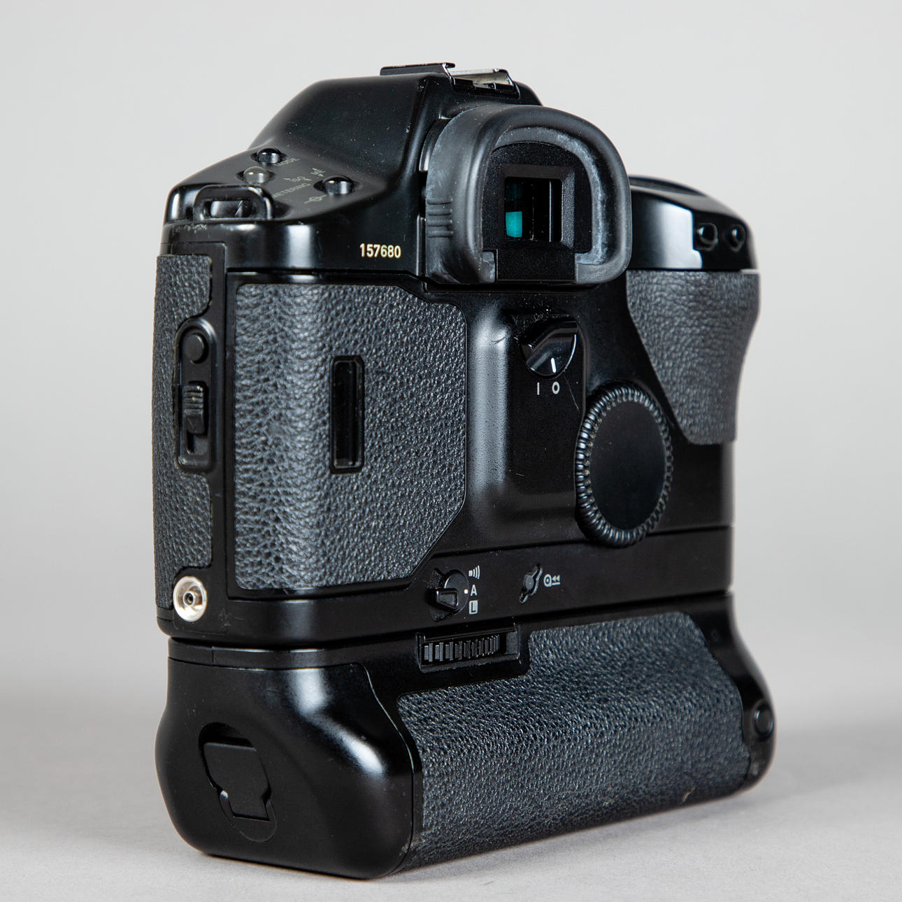 Kamera ist äusserlich in einem gebrauchten Zustand. Partieller Lackabrieb und Kratzer. Der Verschluss der Kamera und der Motor Drive funktionierten zum Zeitpunk der Prüfung, die Belichtungszeiten konnten nicht überprüft werden.