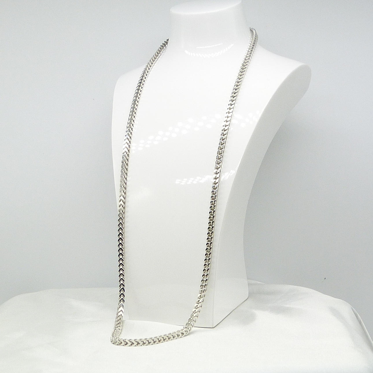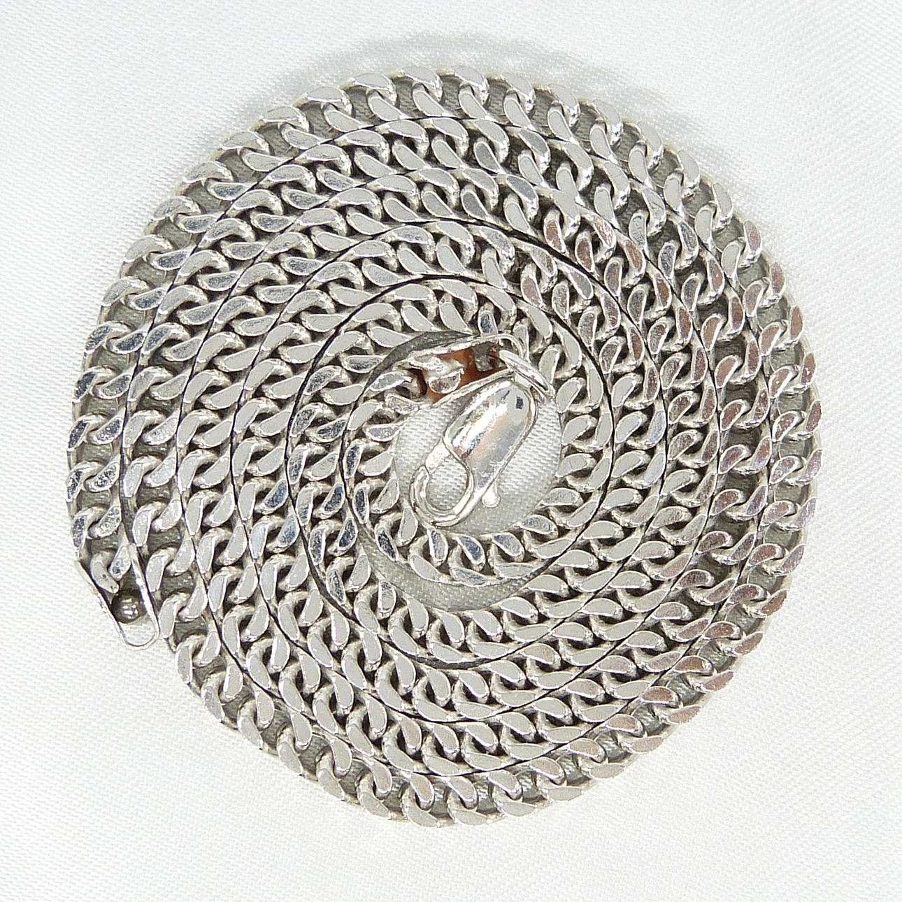 Eine lange und schwere Würfelgliederkette aus Sterlingsilber mit Karabinerverschluss.