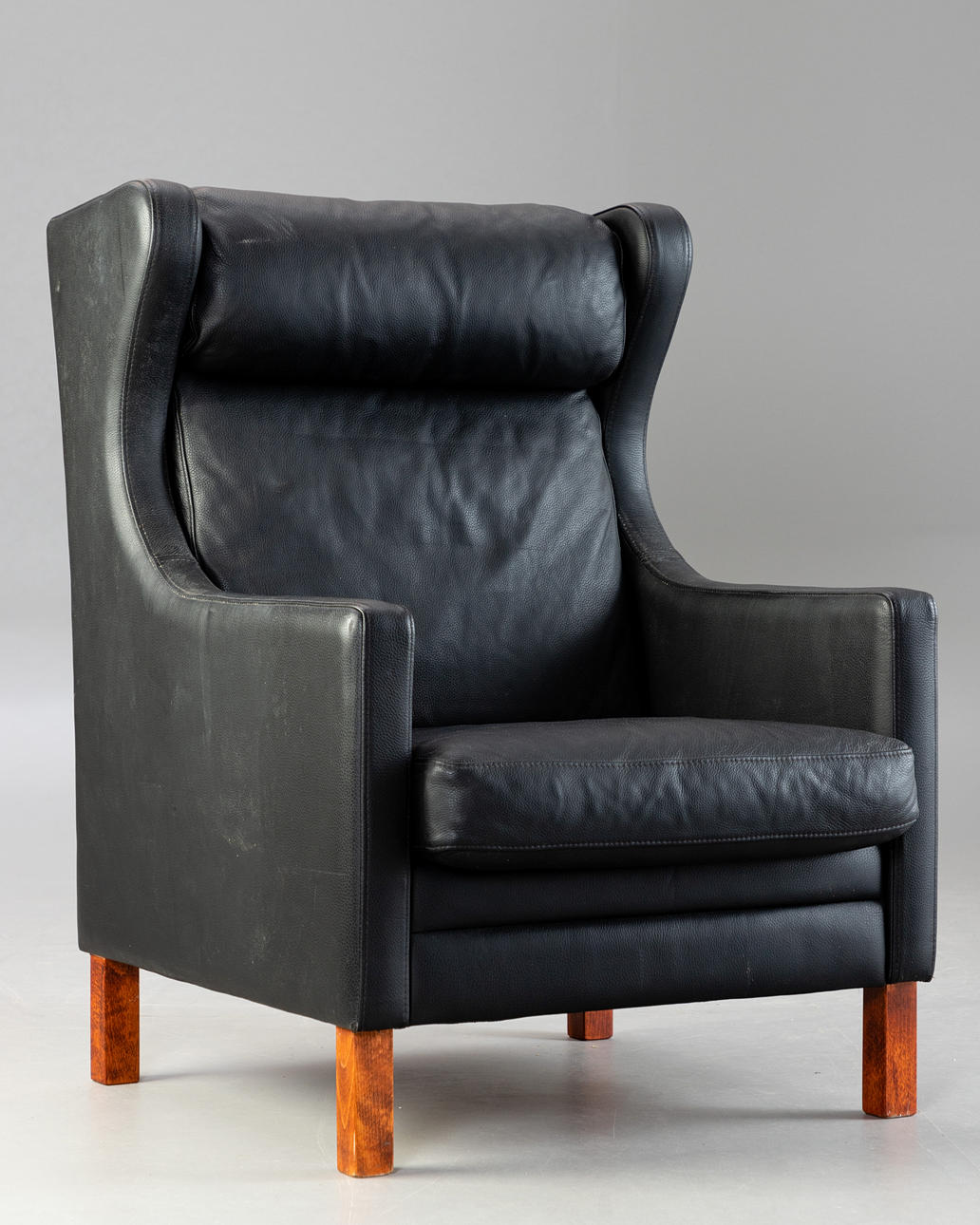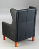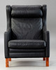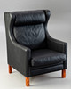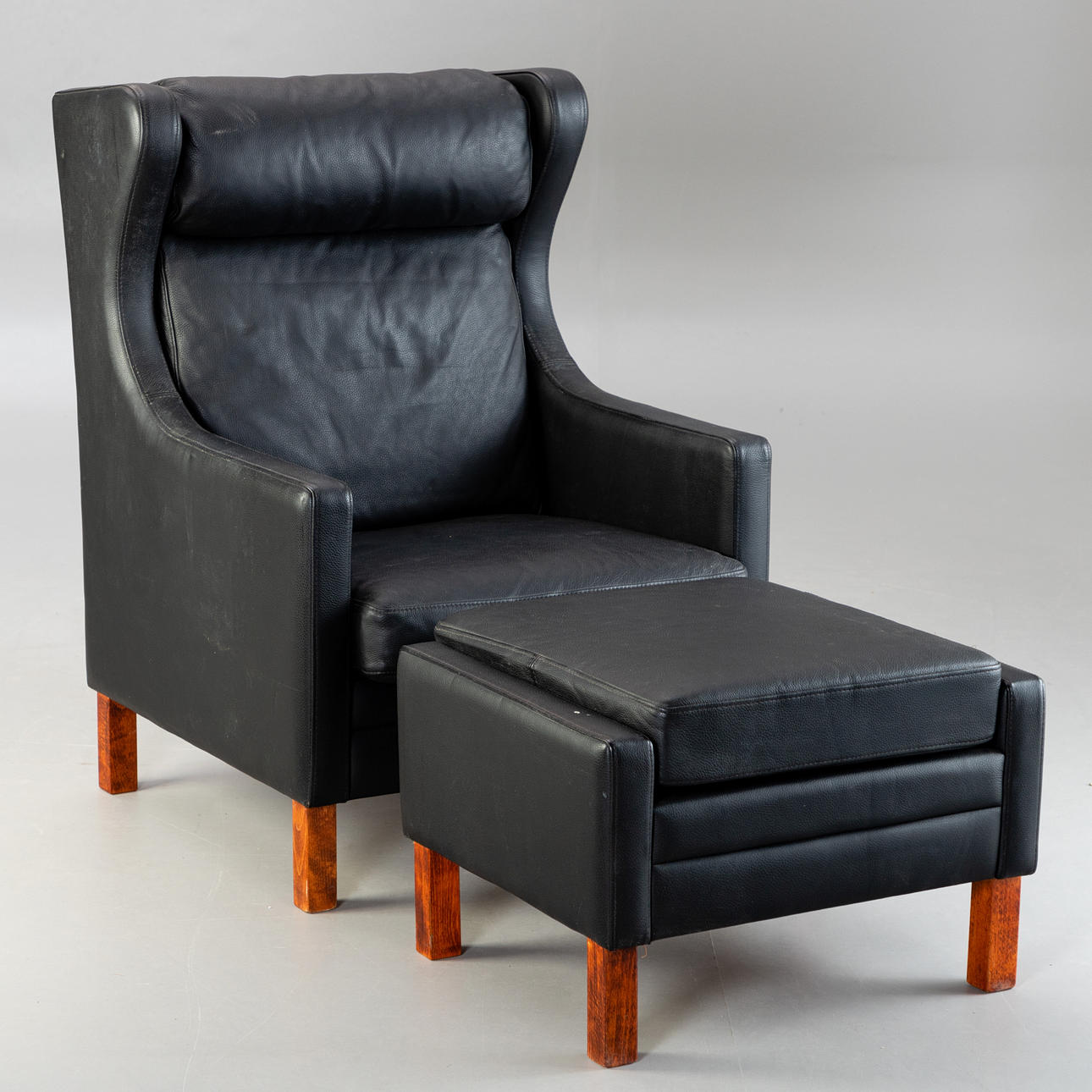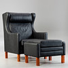 2329164. Schwarzer Ledersessel mit Hocker.