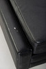 Schwarzer Ledersessel mit Hocker. Lose aufliegende Polsterkissen.