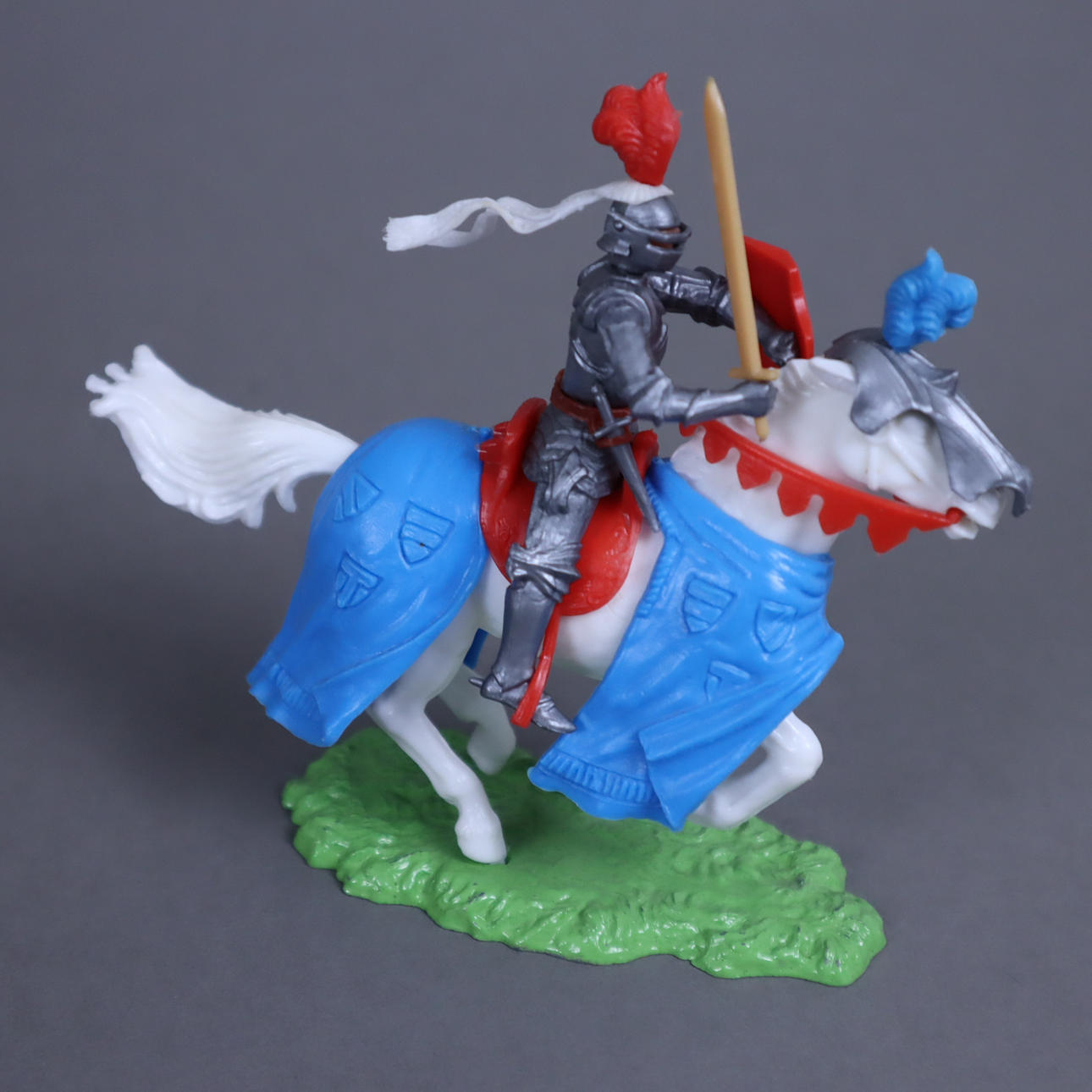 Hartplastik, ca.32 Stück, 13 Ritter mit beweglichen Armen, 2 Ritter zu Pferd, 3 Ritter zu Pferd in der OVP "Die schönsten Steckfiguren der Welt" mit beweglichen Armen, 14 einfachen Ritterfiguren.