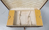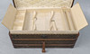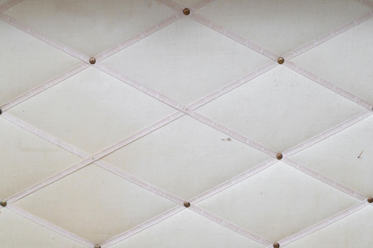 die aufklappbare Oberseite umschließt zwei herausnehmbare Tabletts, die obere mit zwei Deckelfächern, mit einem zentralen Lederriemen und seitlichen Griffen, auf Rollen, 100 cm breit x 53 cm tief x 51 cm hoch, schabloniert „I. M.C.' an beiden Enden und mit zwei aufgeklebten Eisenbahn-Gepäcketiketten Das Eigentum der verstorbenen Frau Gina Chamberlain, verkauft im Auftrag von Testamentsvollstreckern ***IMC für Dame Ivy Muriel Chamberlain, GBE, Ehefrau von Sir Austen Chamberlain, KG, PC (1863 -1937). Lady Chamberlain wurde 1925 zur Dame Grand Cross des Order of the British Empire ernannt.