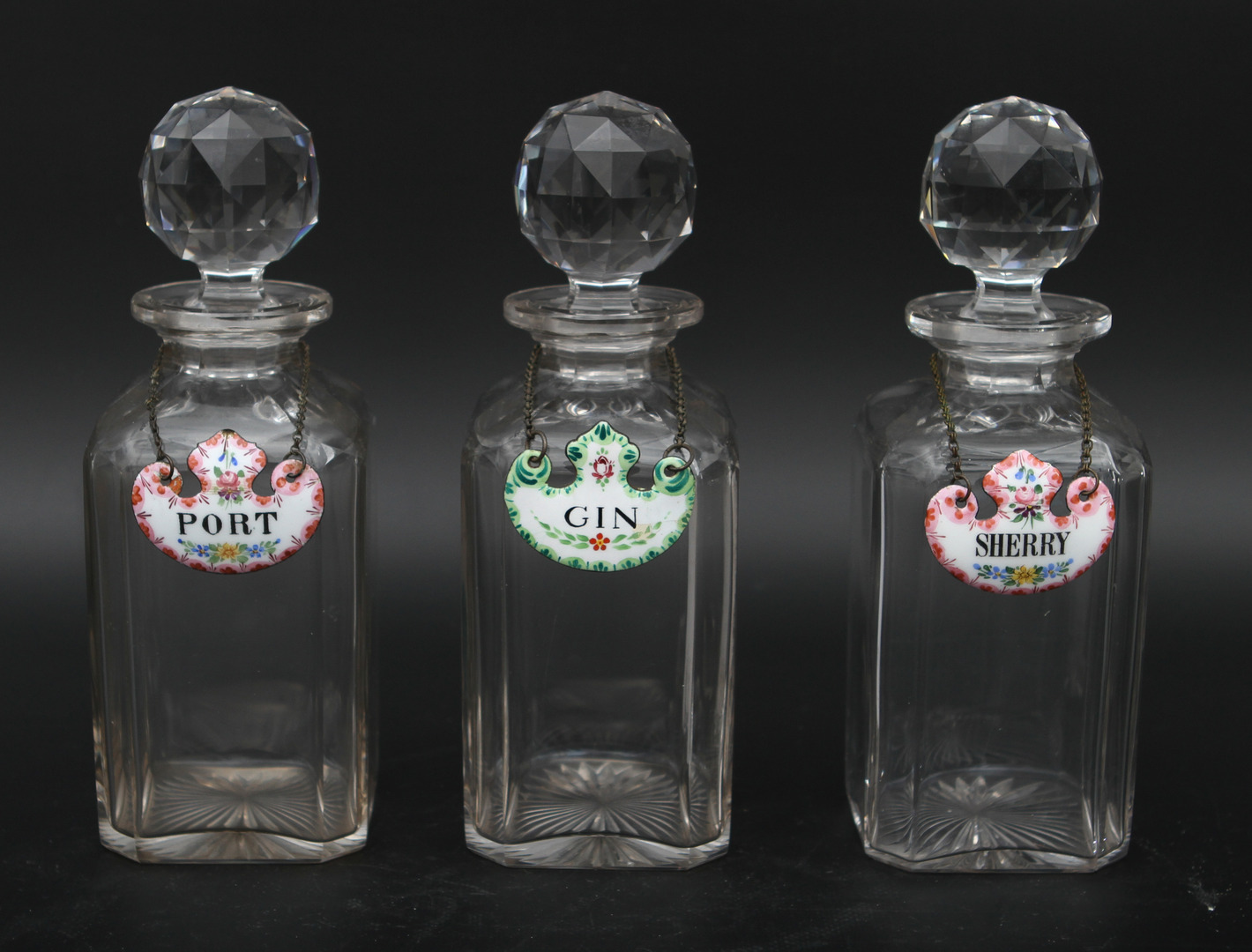 23361. KARAFFEN MIT STOPPER und Tabletts, 3 Stück.