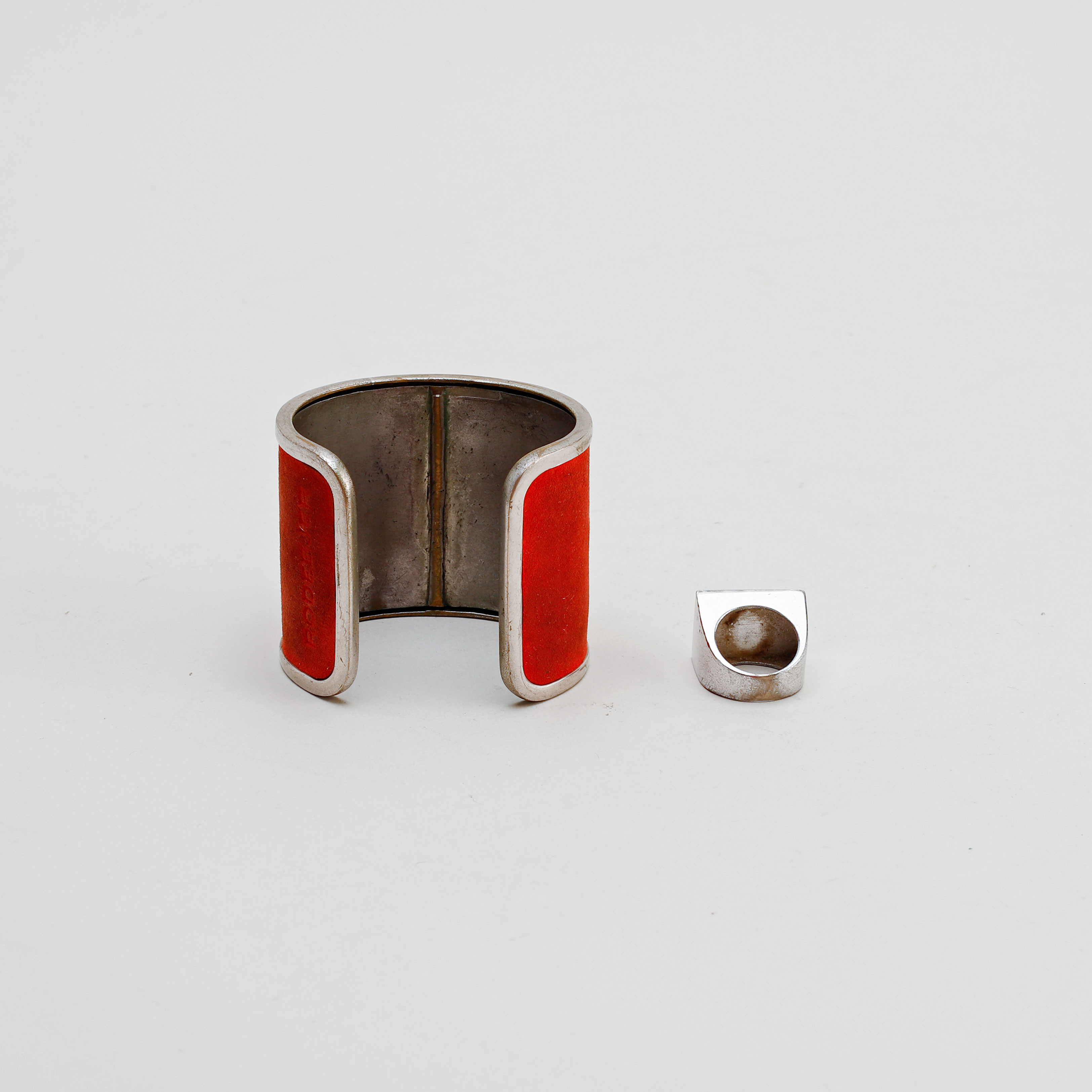 2340498. ARMBAND und RING, Rodebjer, Weißmetall und Wildleder.