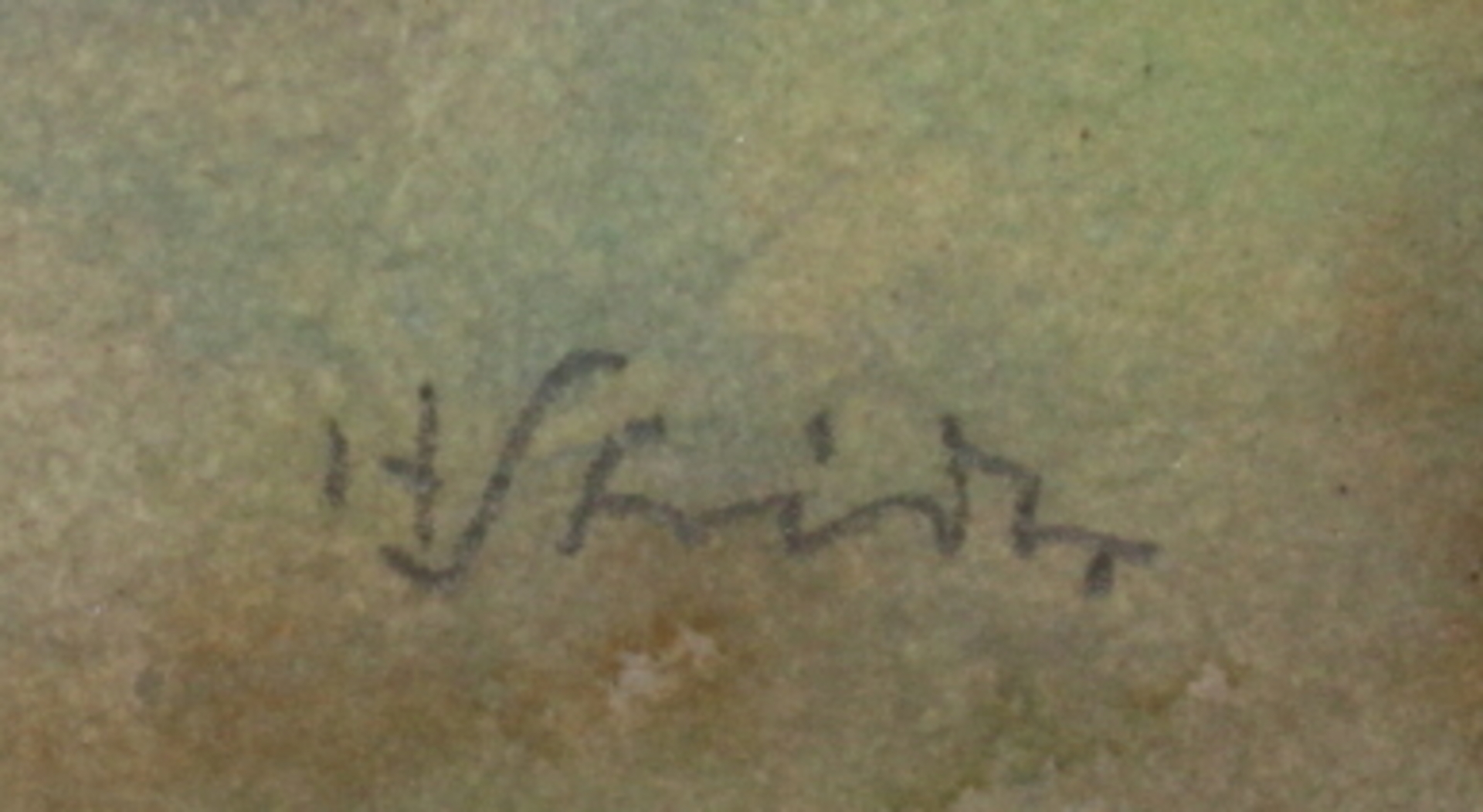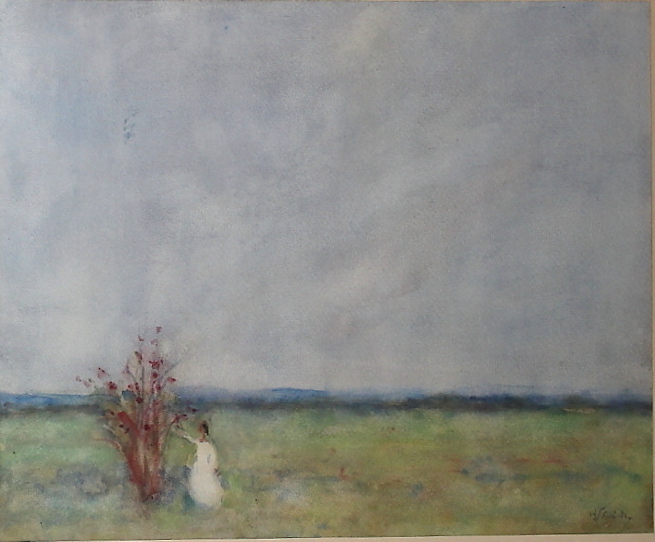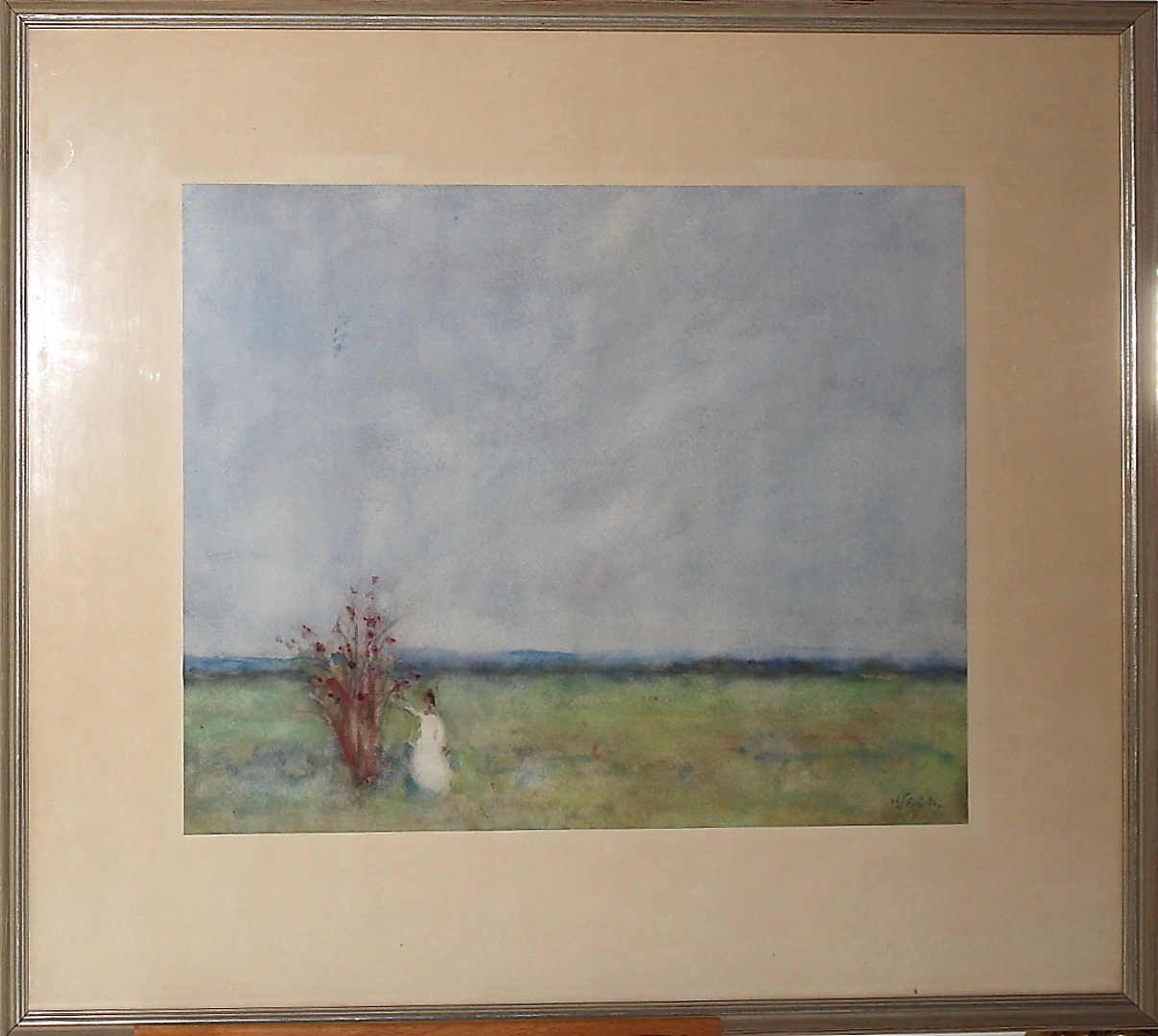 234337. OIDENTIFIERAD KONSTNÄR. Aquarell, Mädchen am Busch, signiert.