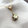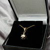 Diese Halskette ist aus Gelbgold (Anhänger geprüft auf 8 Karat, nicht punziert; Kette auf 14 Karat geprüft und mit „585“ gestempelt).