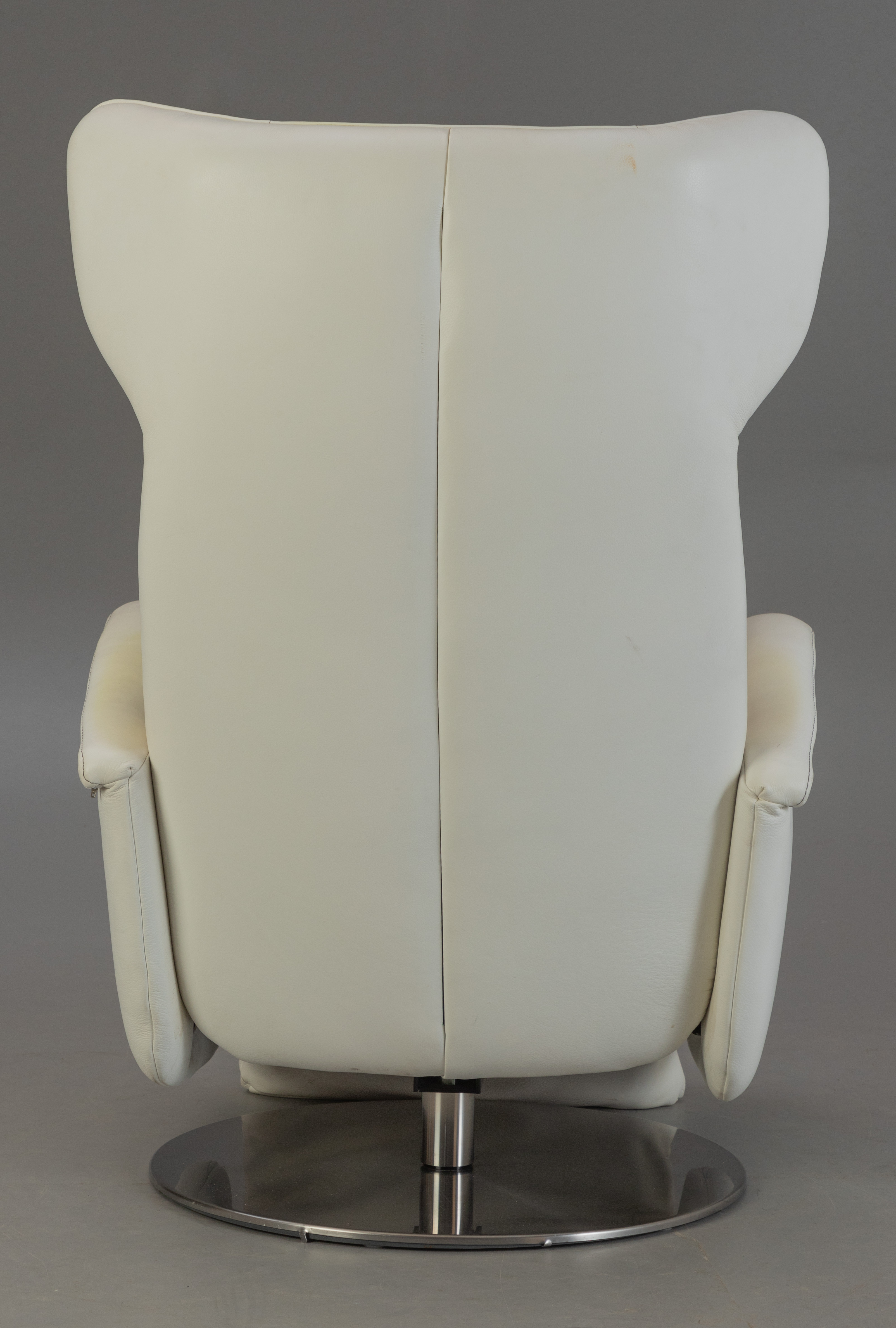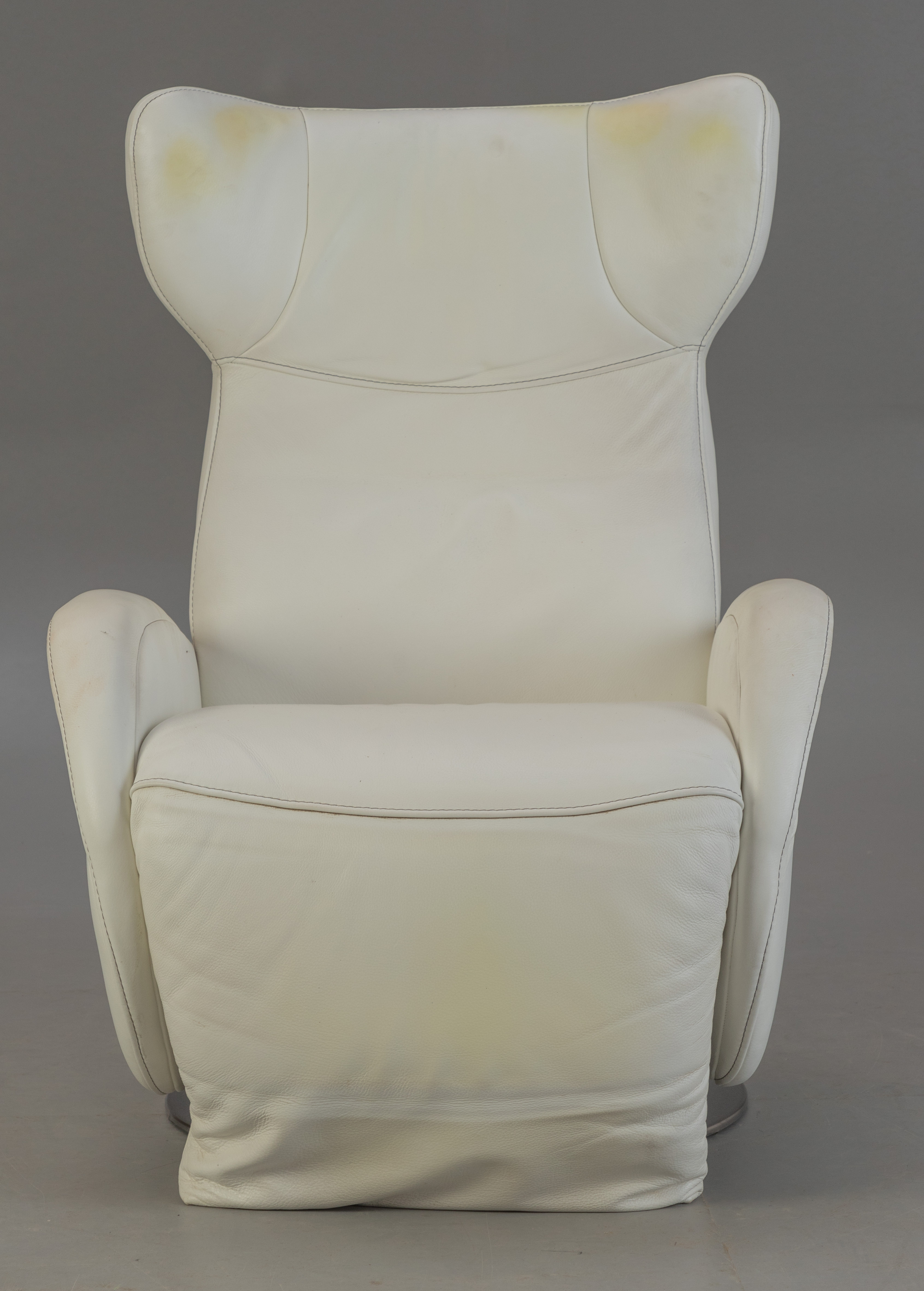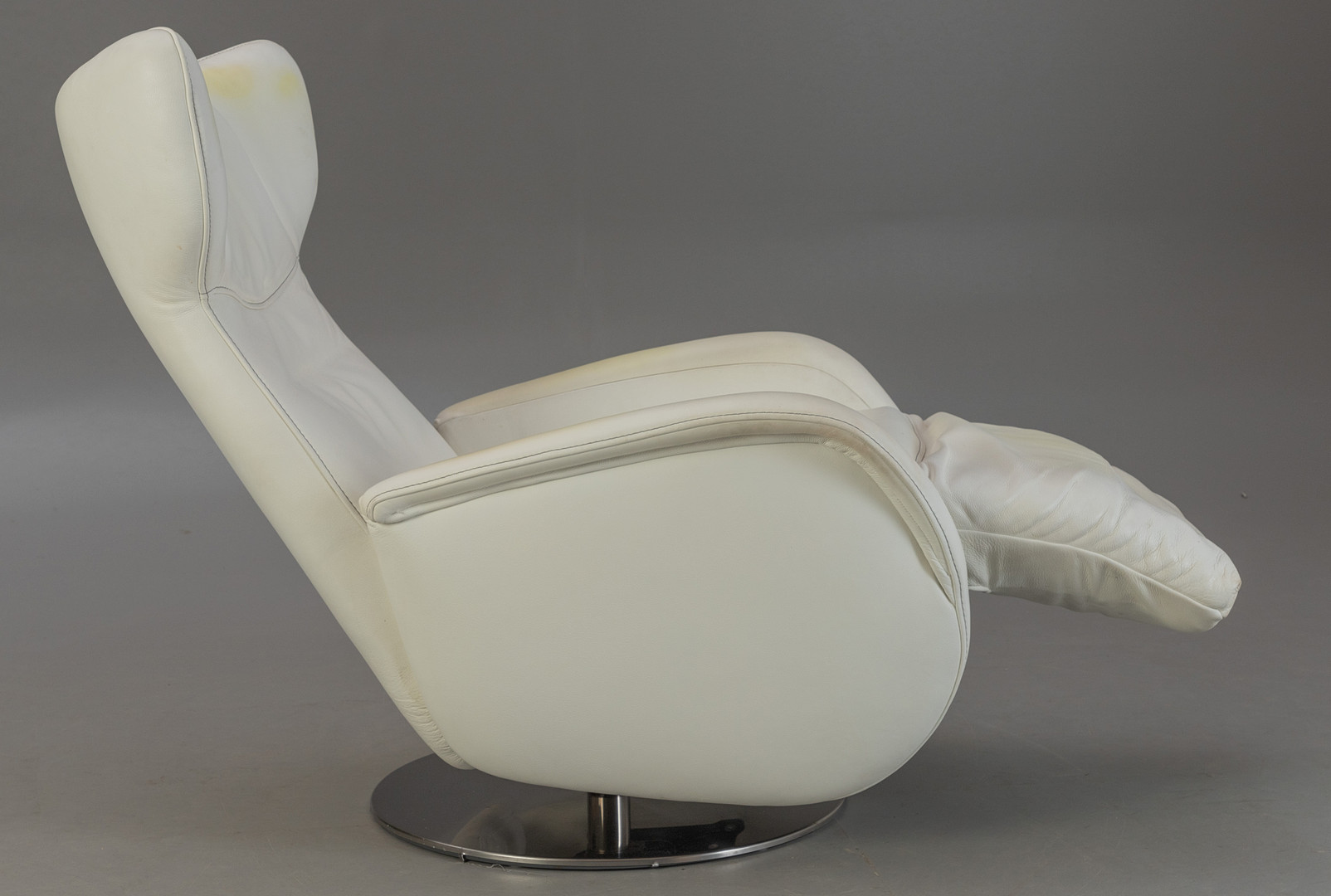 2344983. Ohrensessel / Drehsessel. Weißes Leder.