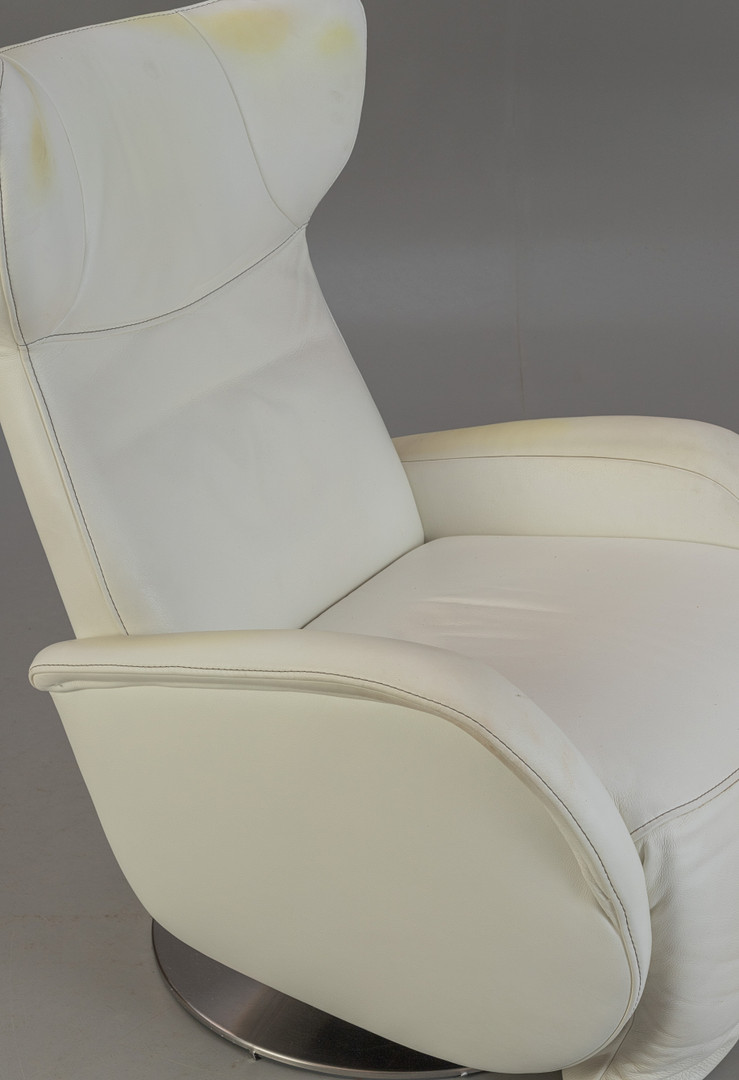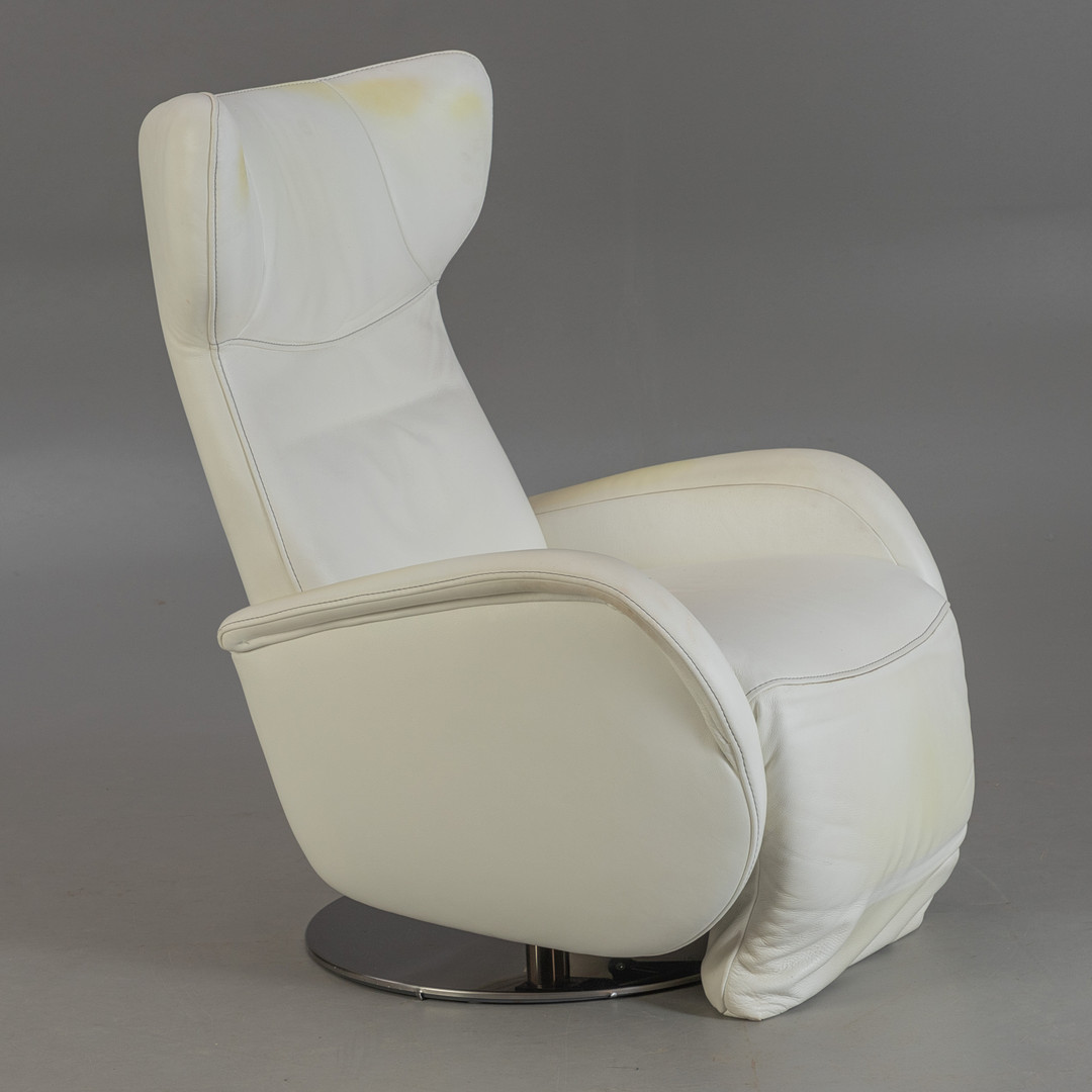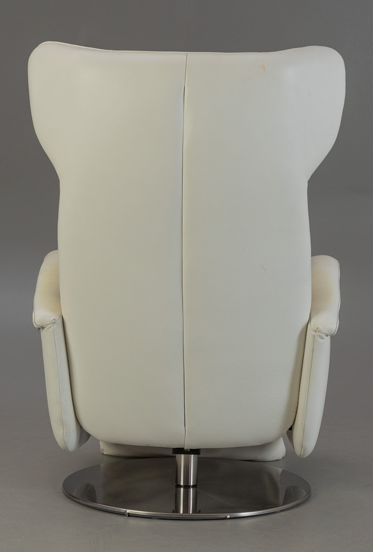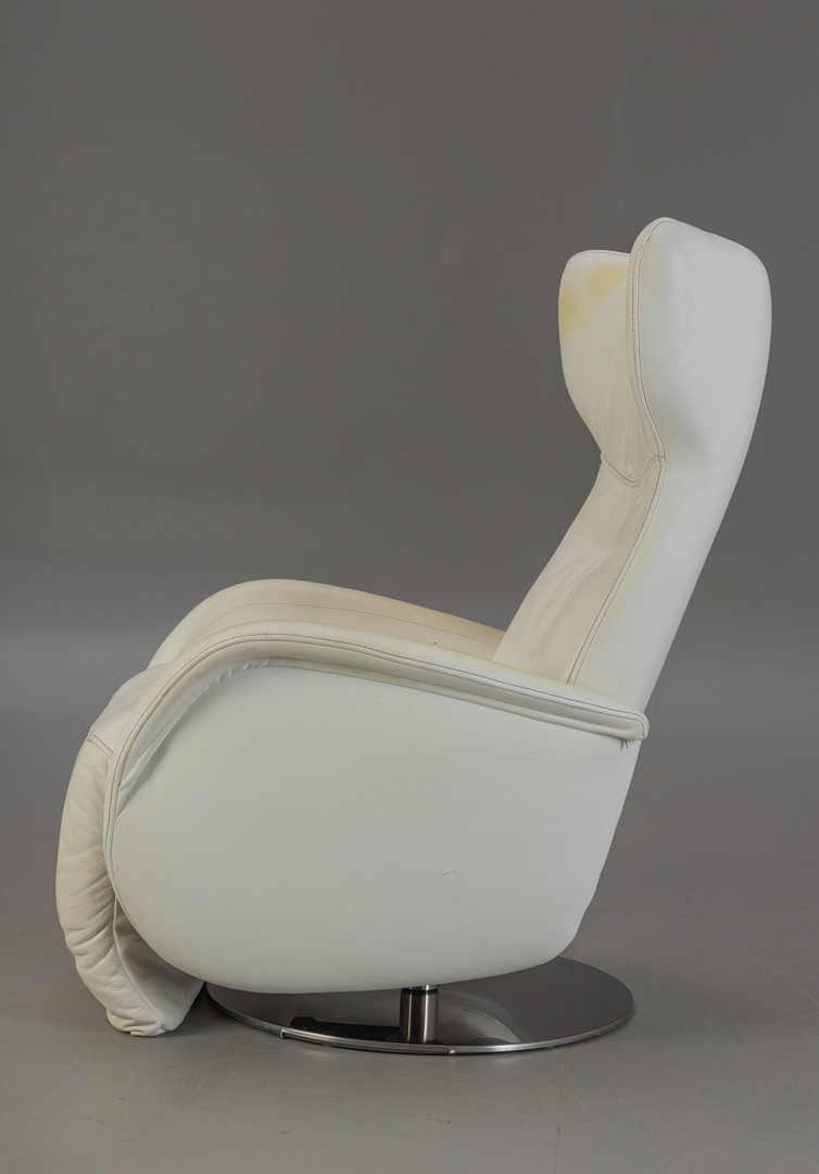 2344983. Ohrensessel / Drehsessel. Weißes Leder.