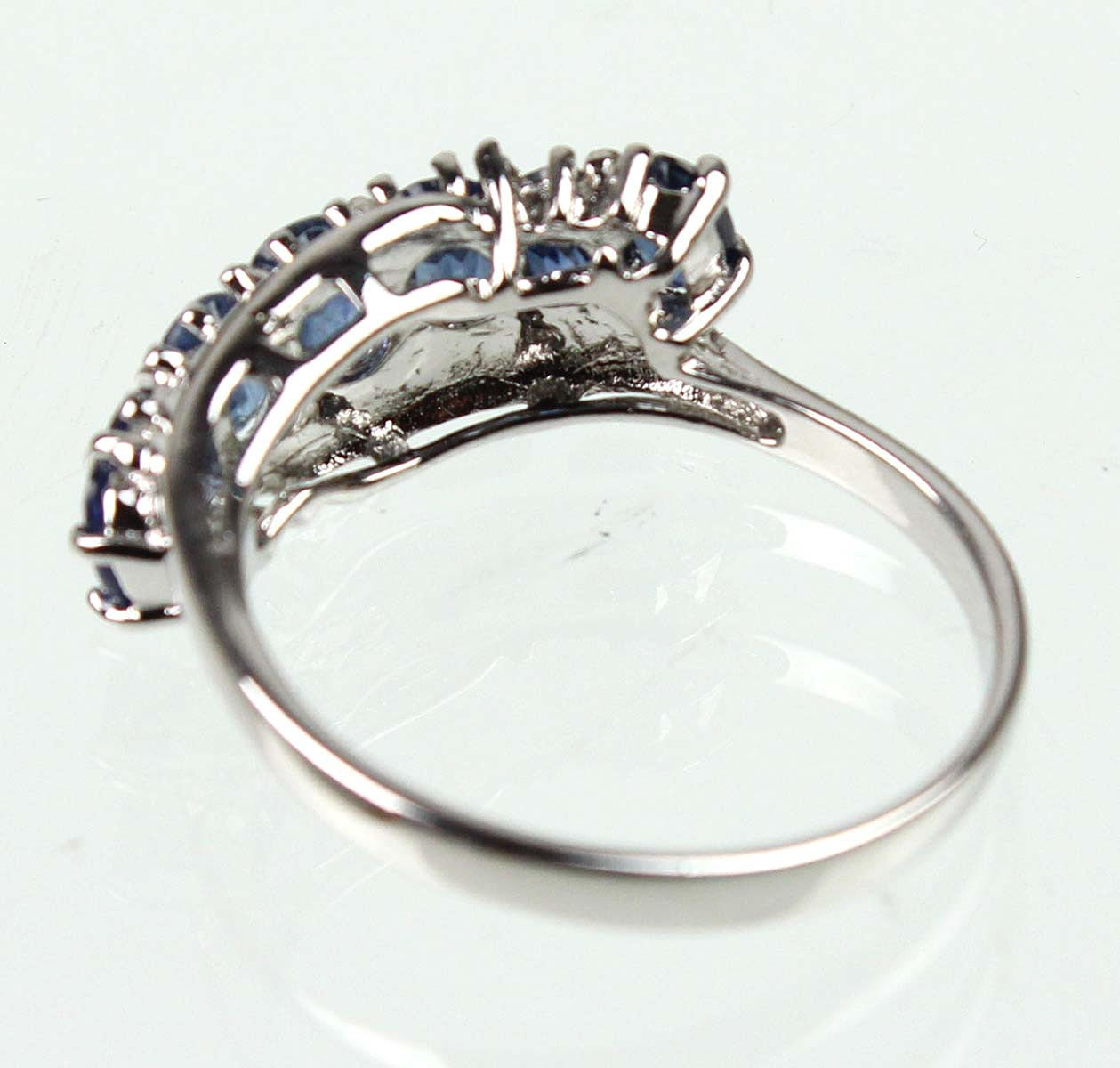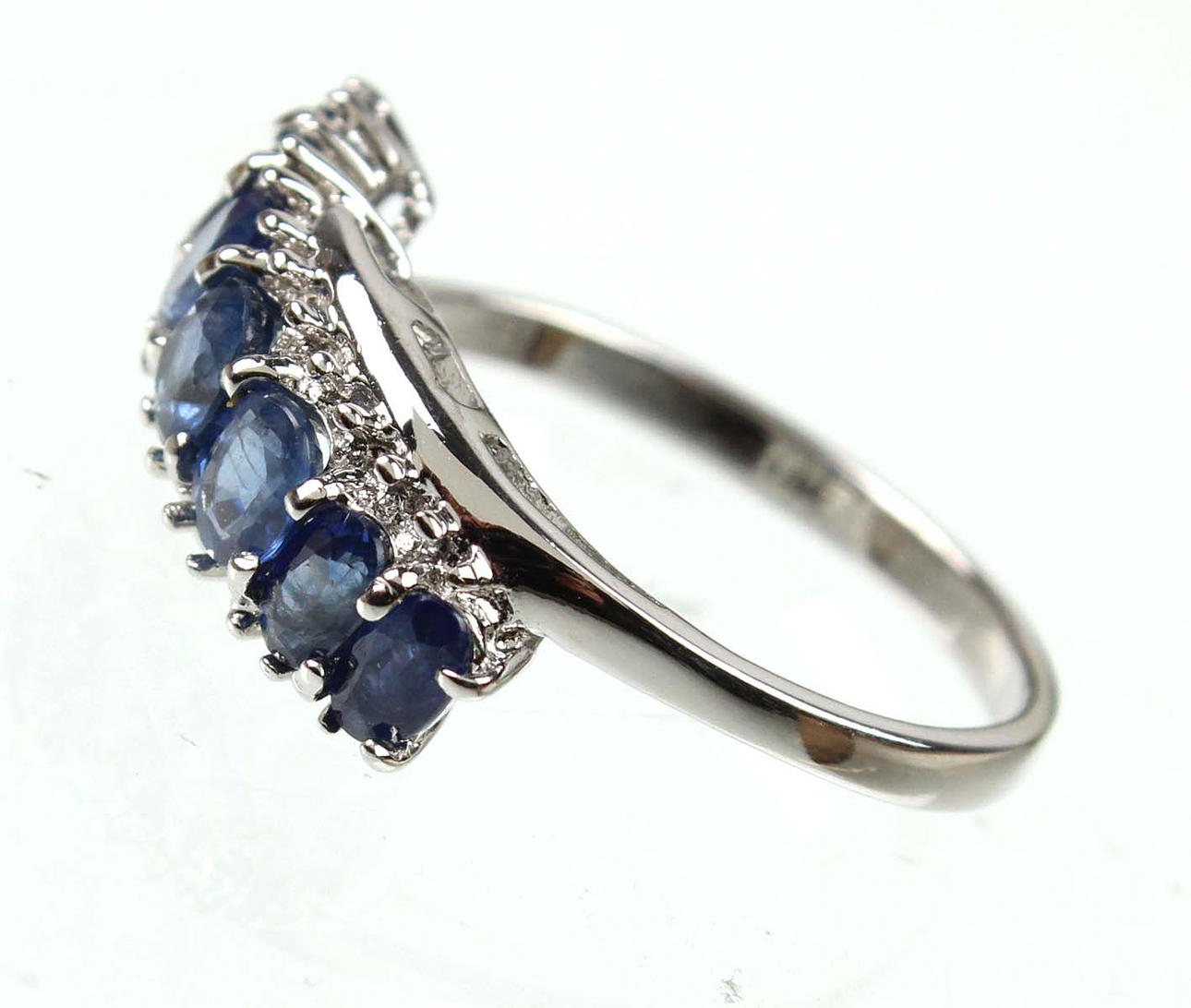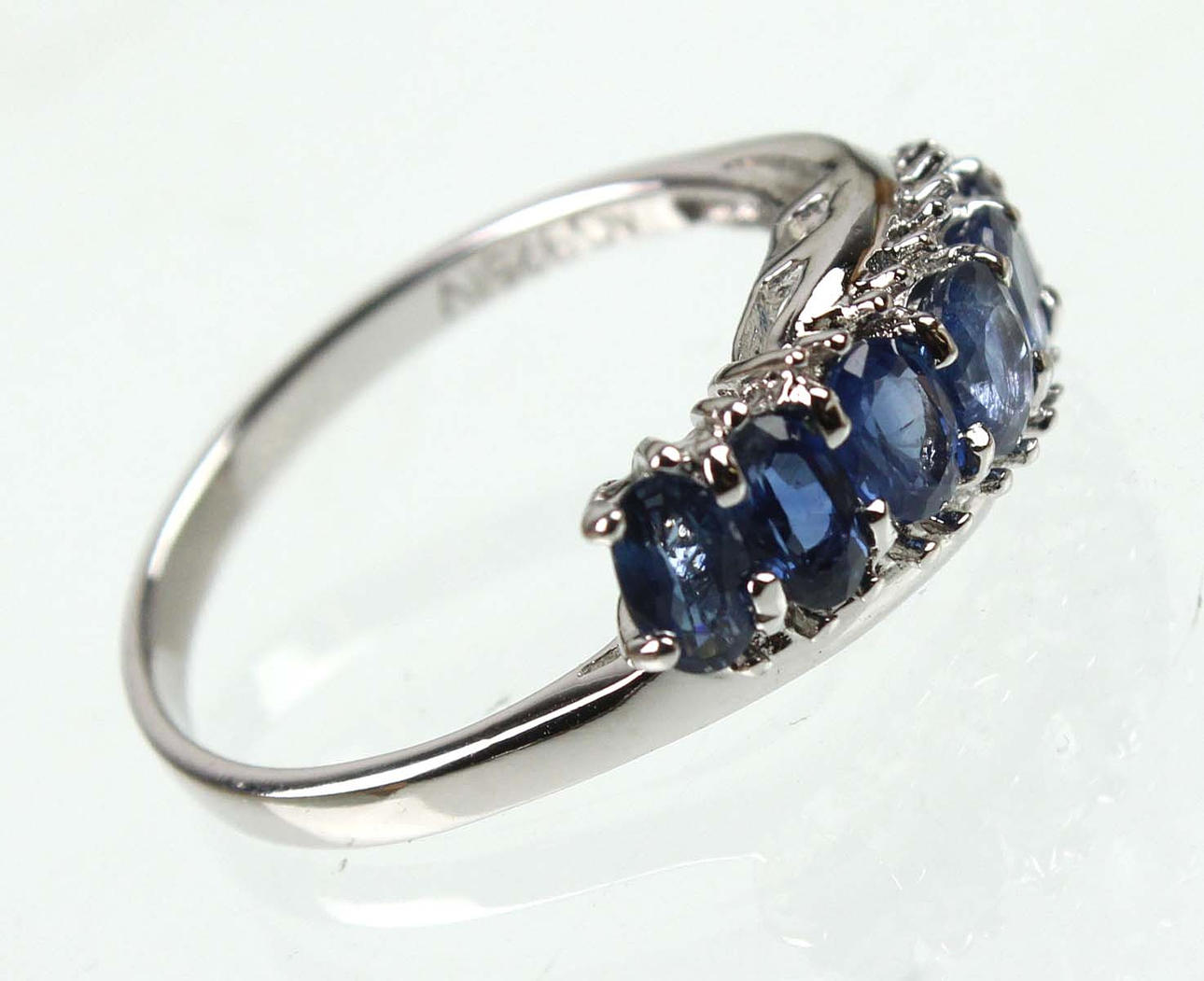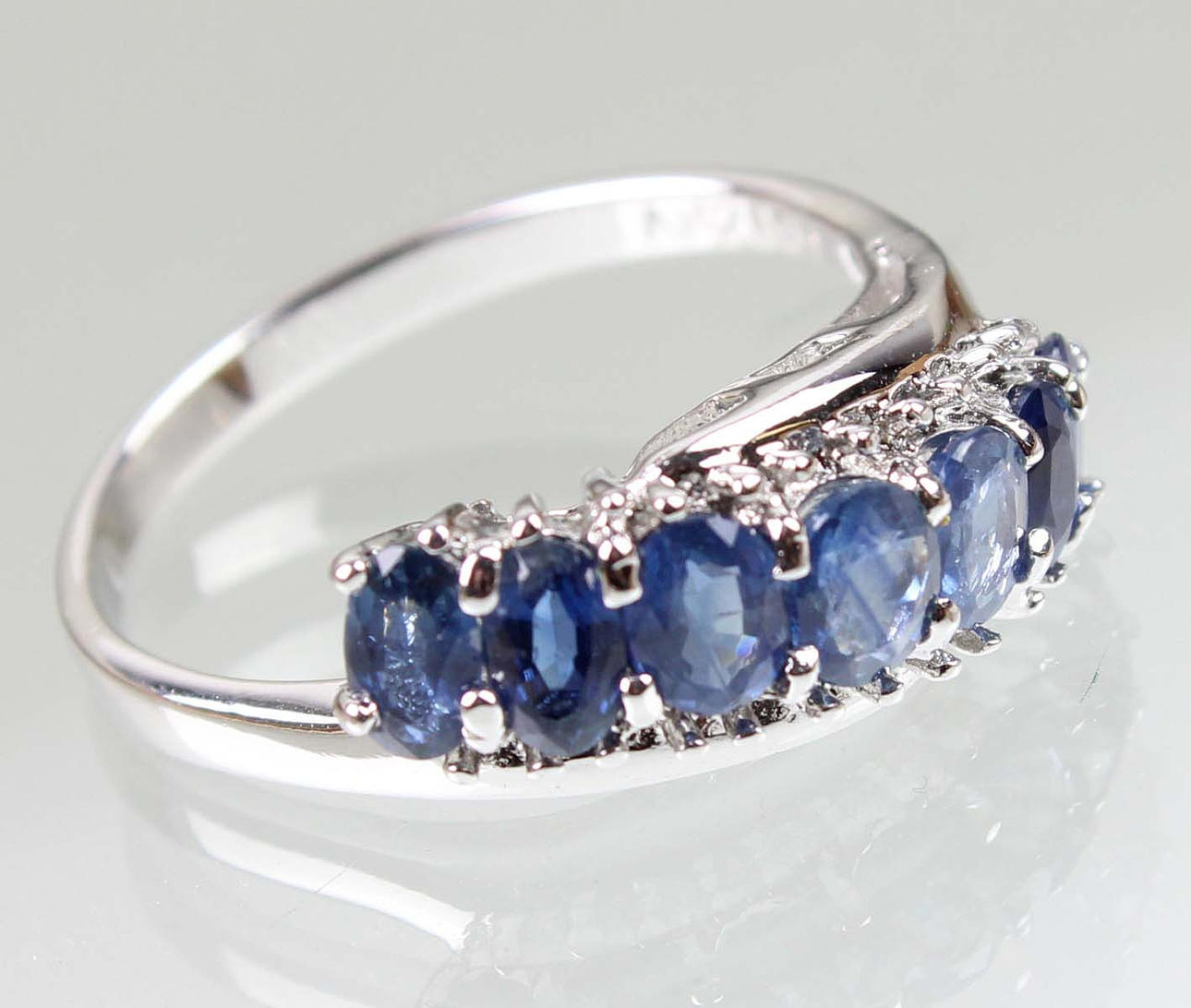 Ringkopf ist besetzt mit 7 oval facettierten Natur Saphiren, Ringgröße 60, Innendurchmesser der Ring-Schiene 20 mm,