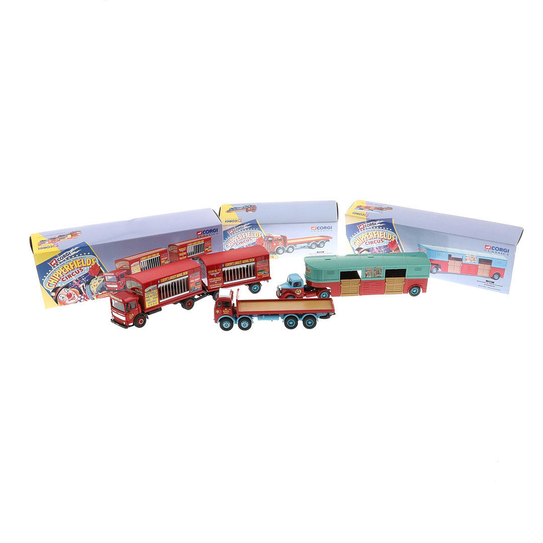 in Originalkarton und -verpackung und Zertifikat, Corgi Chipperfields Circus ERF Achtrad-Lkw 97957, in Originalkarton und -verpackung, und Zertifikat, Corgi Chipperfields Circus Bedford O Gelenkpferdetransporter 97887, in Originalkarton, -verpackung und Zertifikat (3).