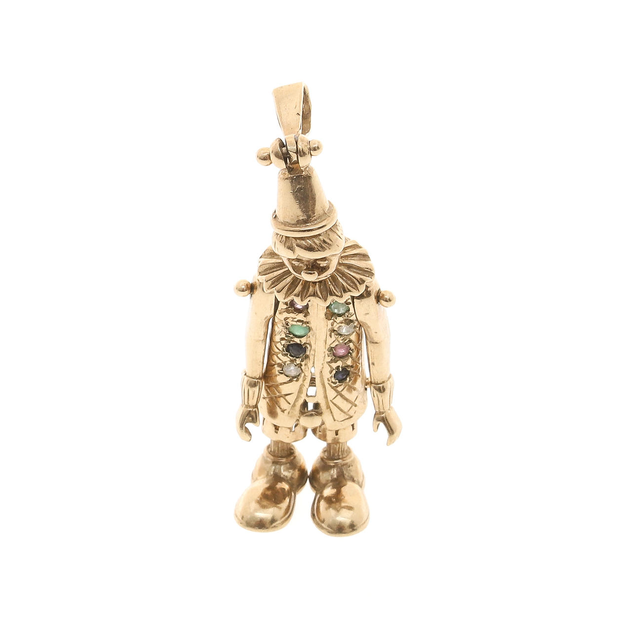 Mit beweglichen Teilen, besetzt mit acht farbigen Steinen am Mantel, 5,2 cm lang, 12 g brutto.