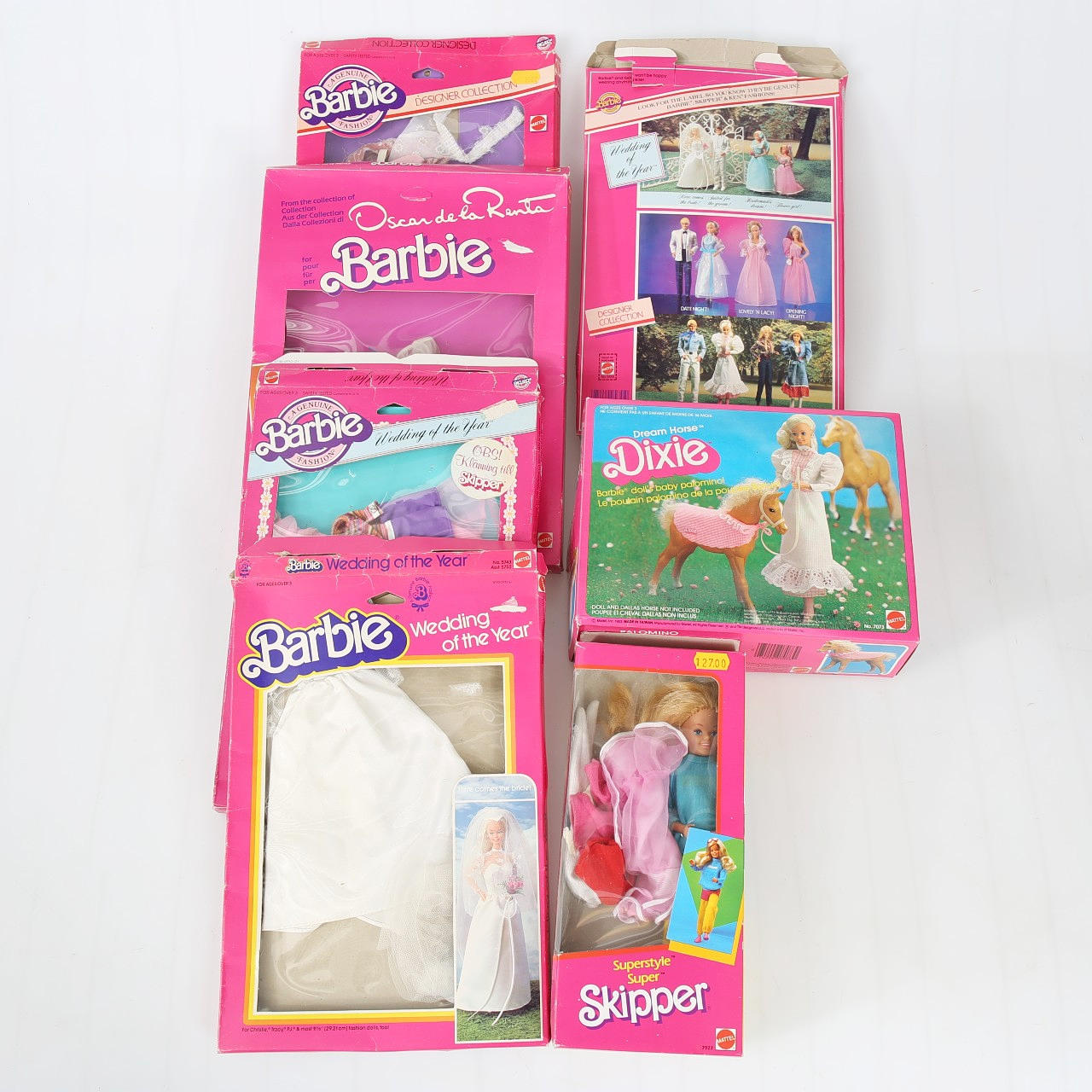 Modell Nr. 7927,7073 Diverse Barbie-Kleidung, u.a. Hochzeitskleid, Originalverpackung.