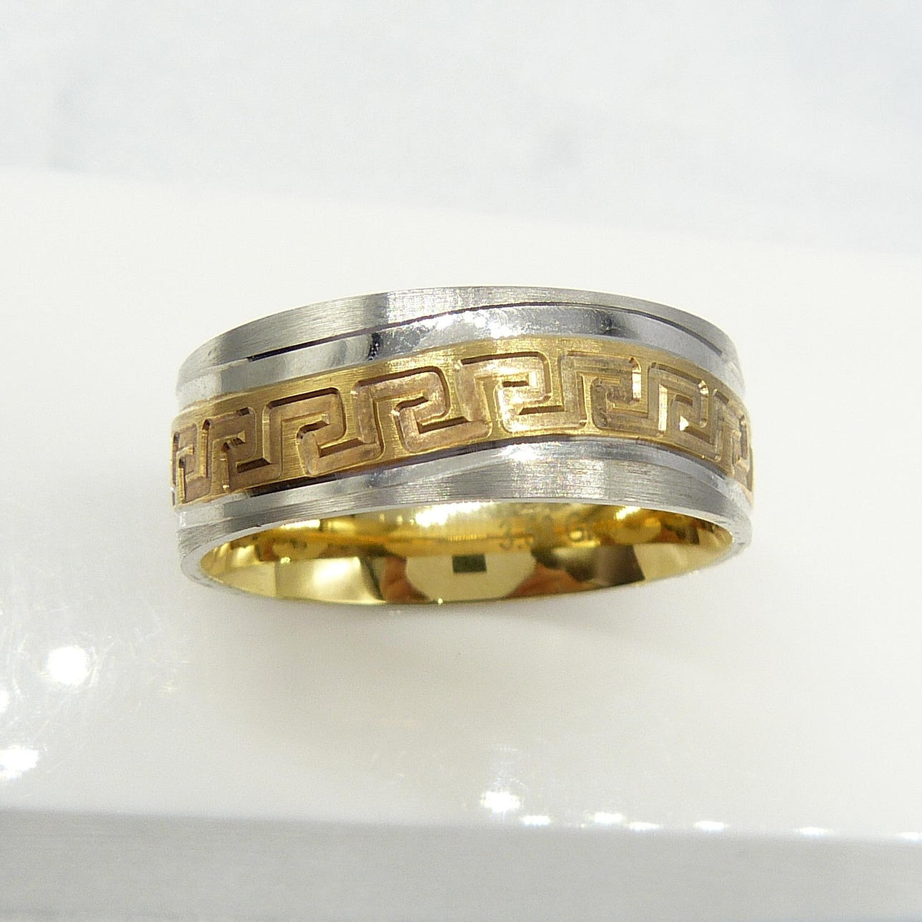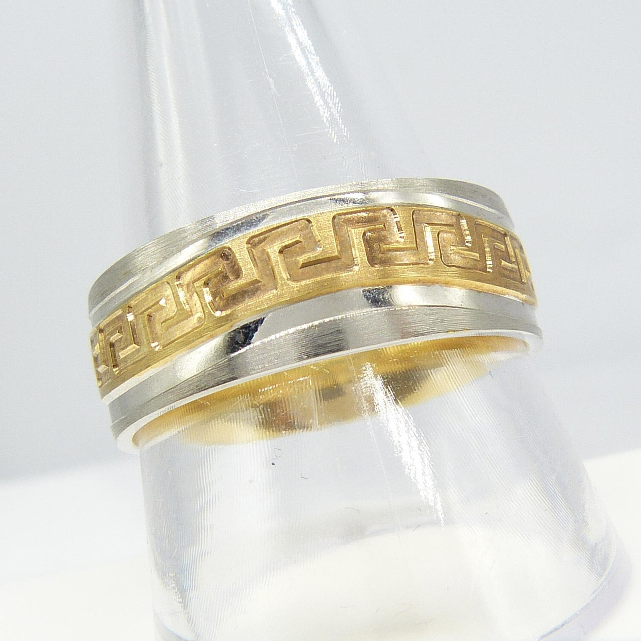 Ein stilvoller Moda-Demo-Ring im griechischen Schlüsselstil aus Silber und Kupfer/Messing.