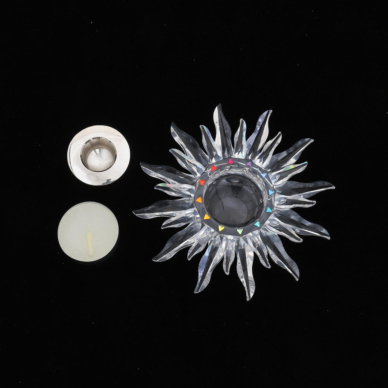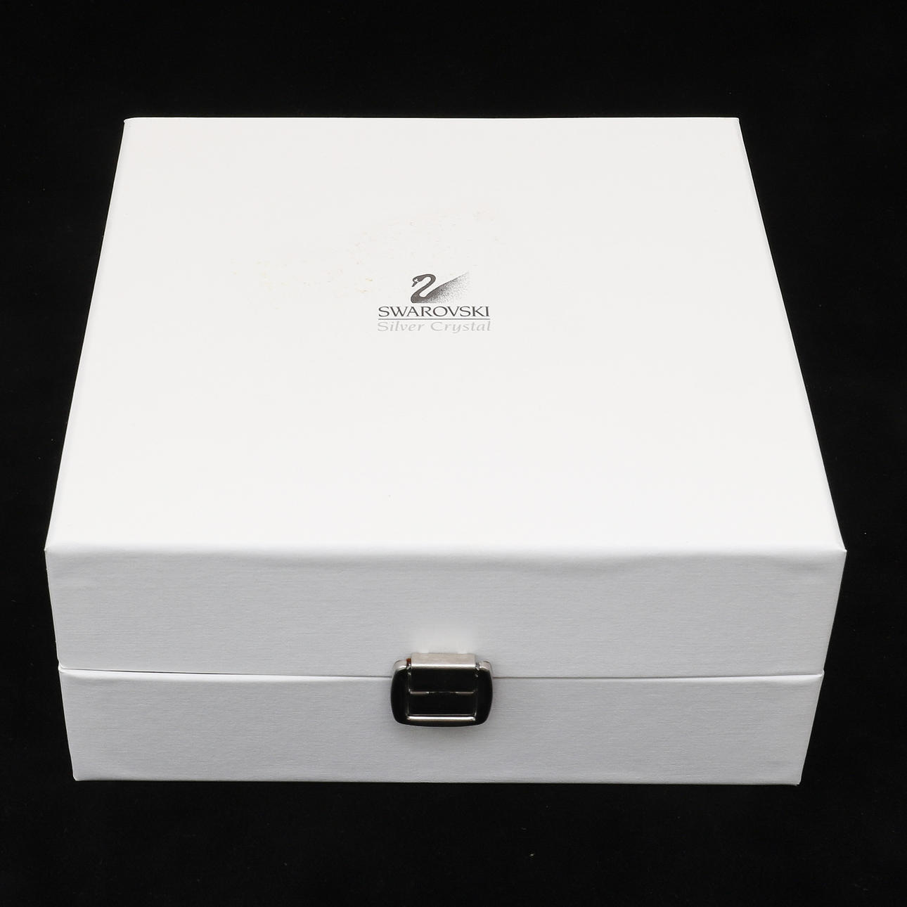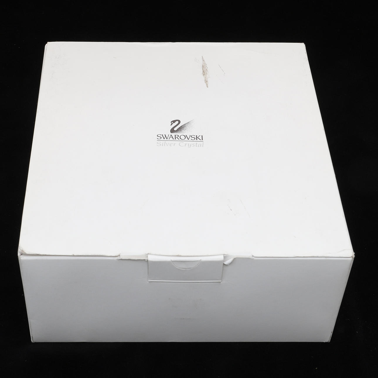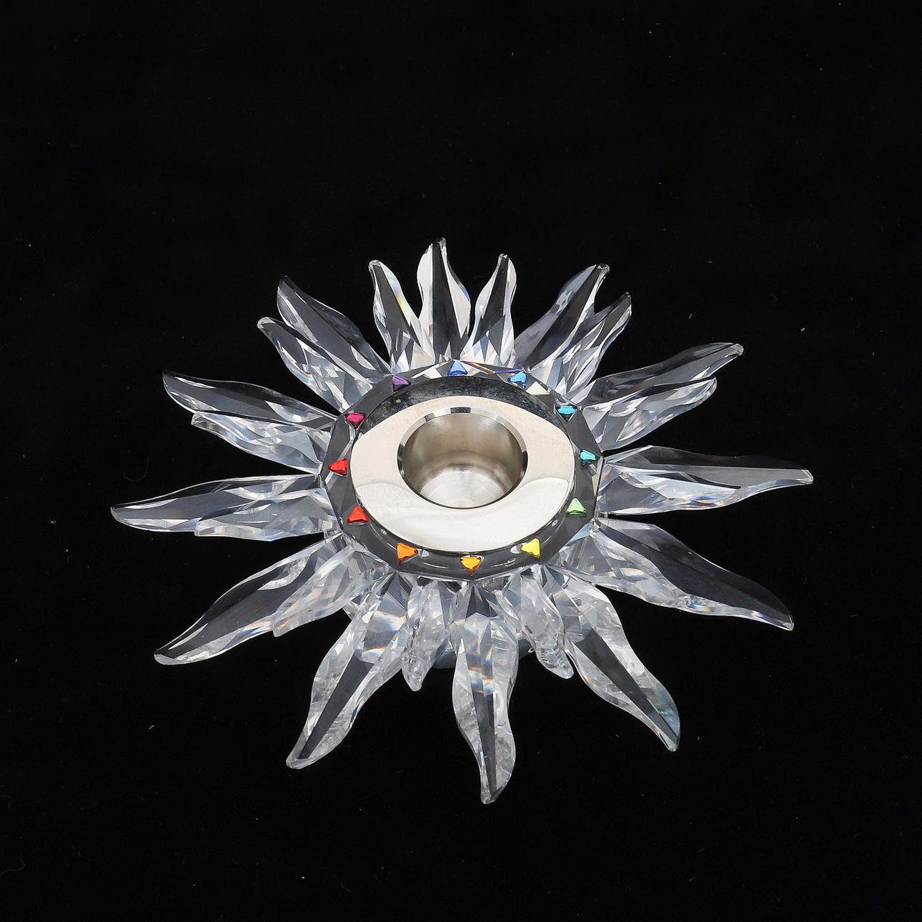 Nr. 236719, in einem klaren, facettierten Kristall mit farbigen Kristallen um die Mitte herum, der Halter hat einen separaten Metallhalter, der in die Mitte passt, für entweder eine Kerze oder ein Teelicht, 13,5 cm Durchmesser, mit Zertifikat, in originaler passender Schachtel mit Außenhülle Kartonumschlag.