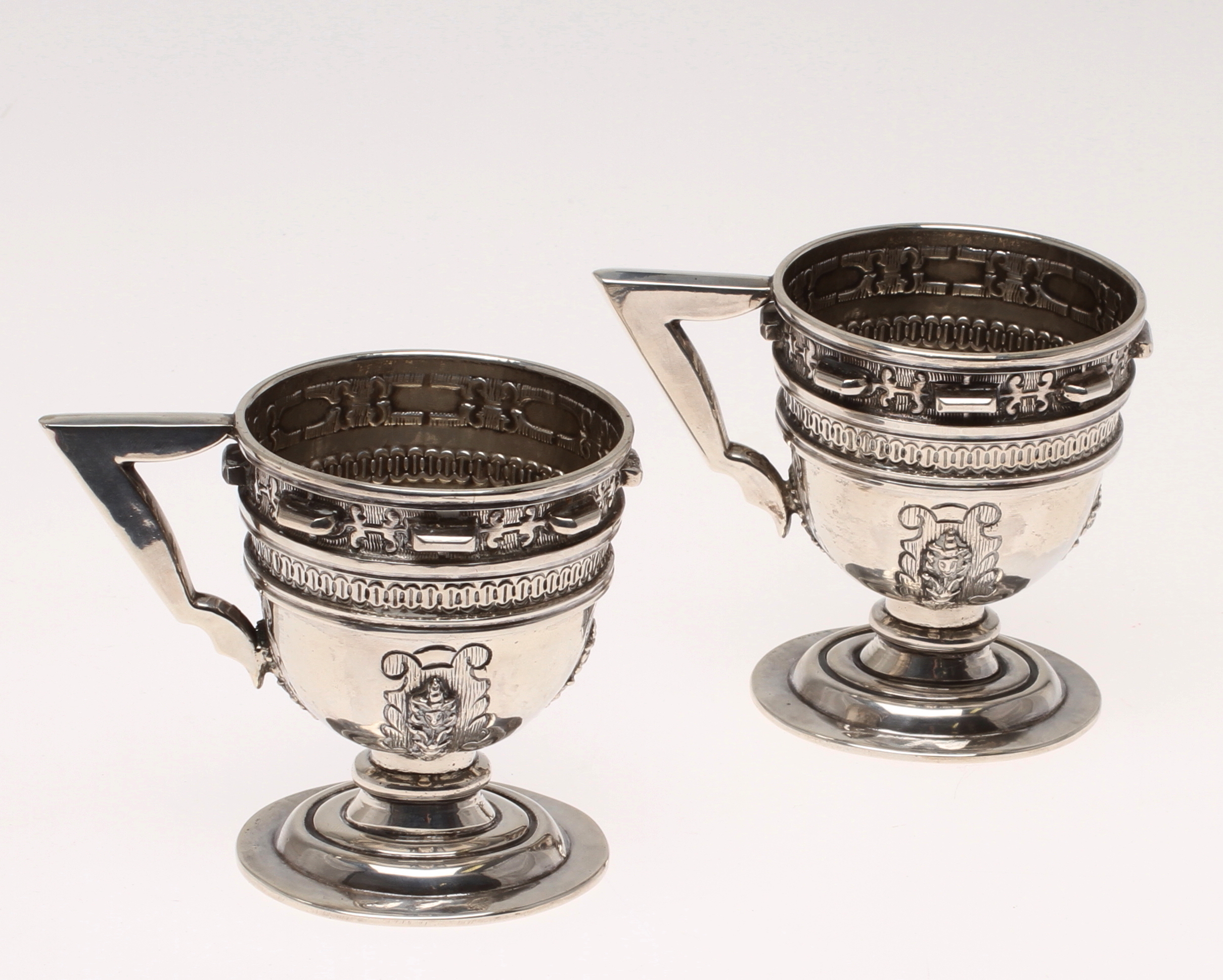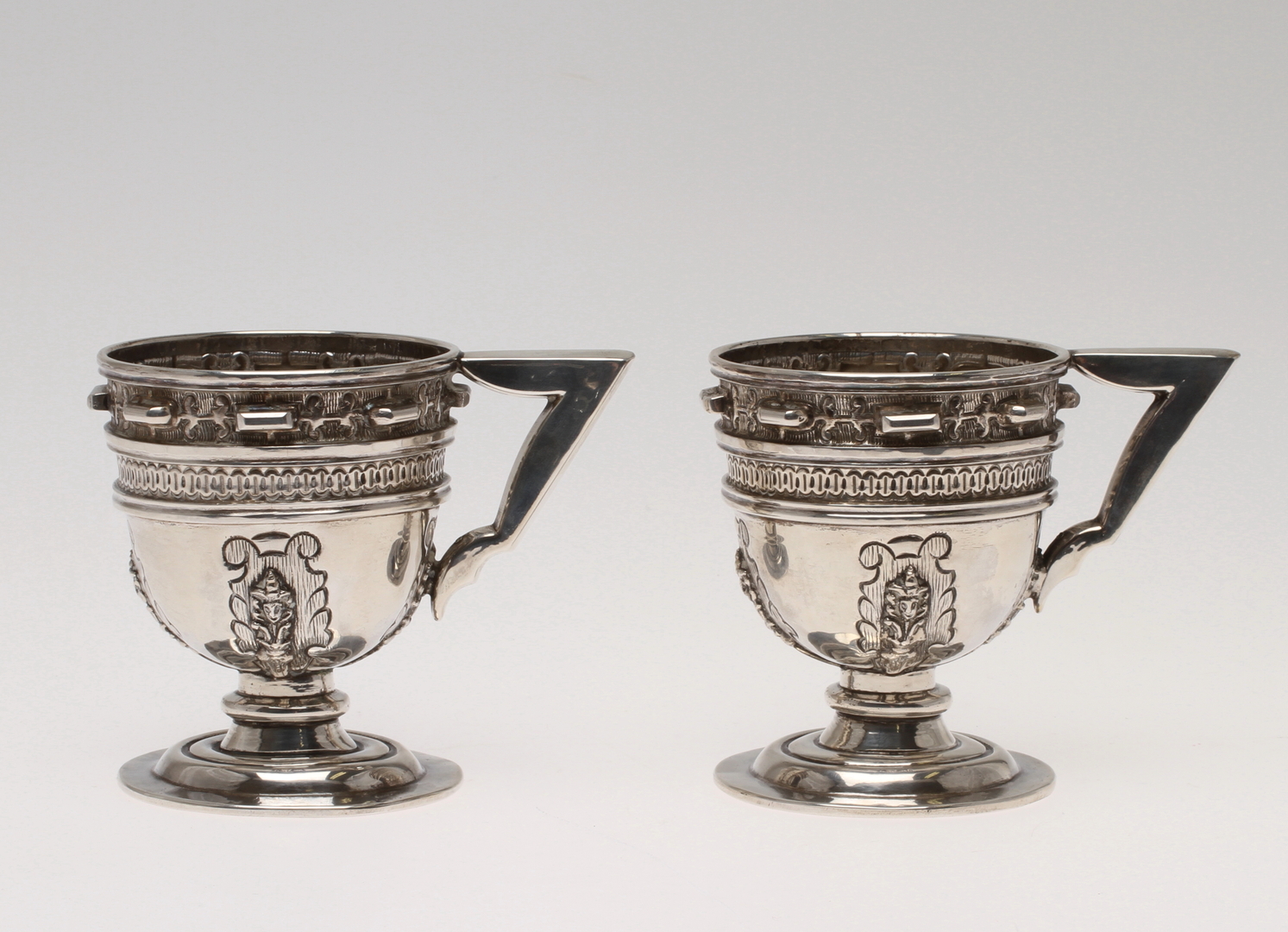 23607. BECHER zu Fuß, 2 Stück, Silber.