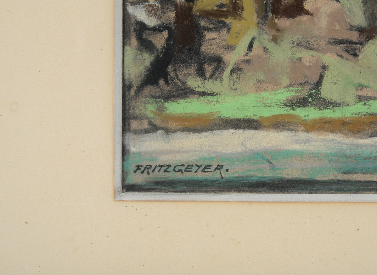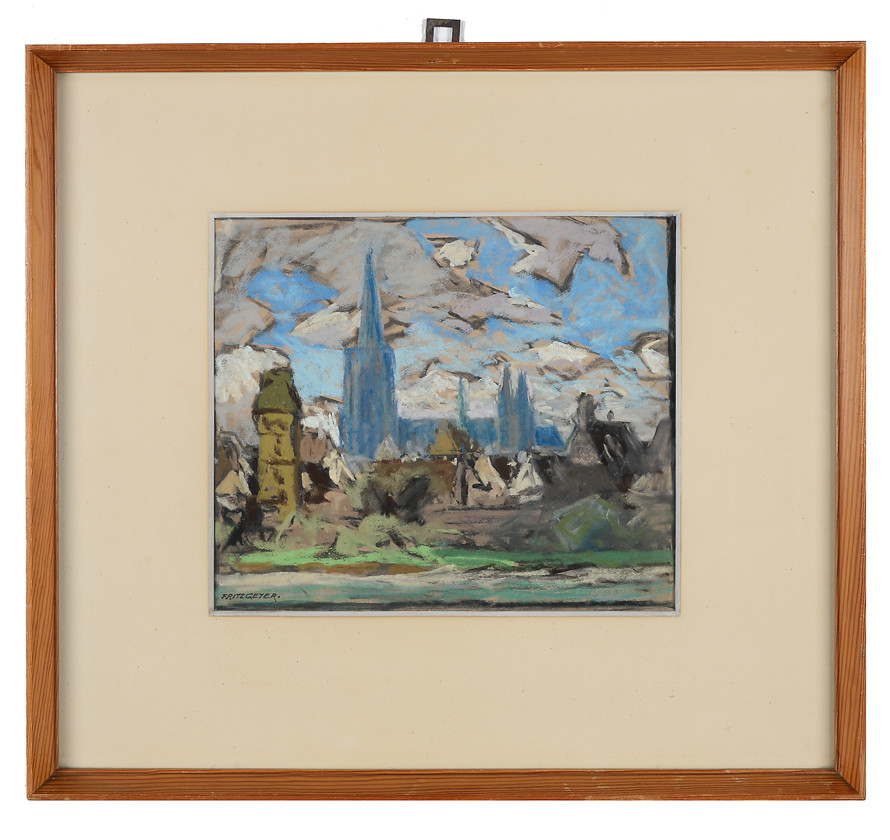 2361954. FRITZ GEYER. " Stadtsilhouette mit Domkirche ". Öl auf Karton.