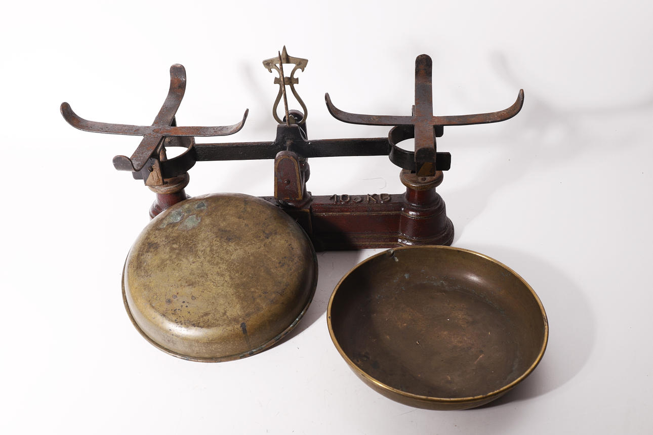 2362973. ALTE WAAGE MIT SEINEN GEWICHTEN.