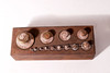 ALTE WAAGE MIT SEINEN GEWICHTEN.