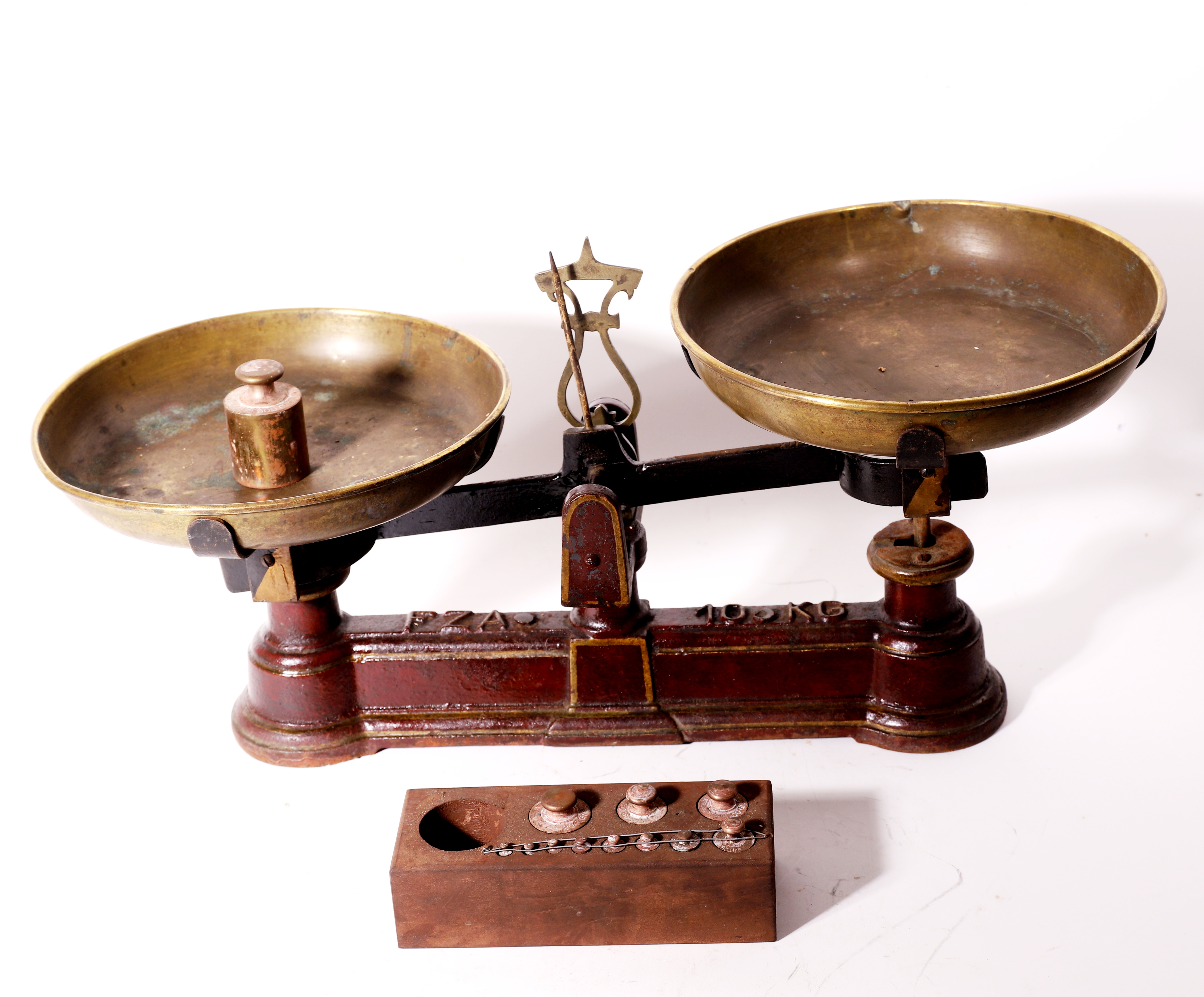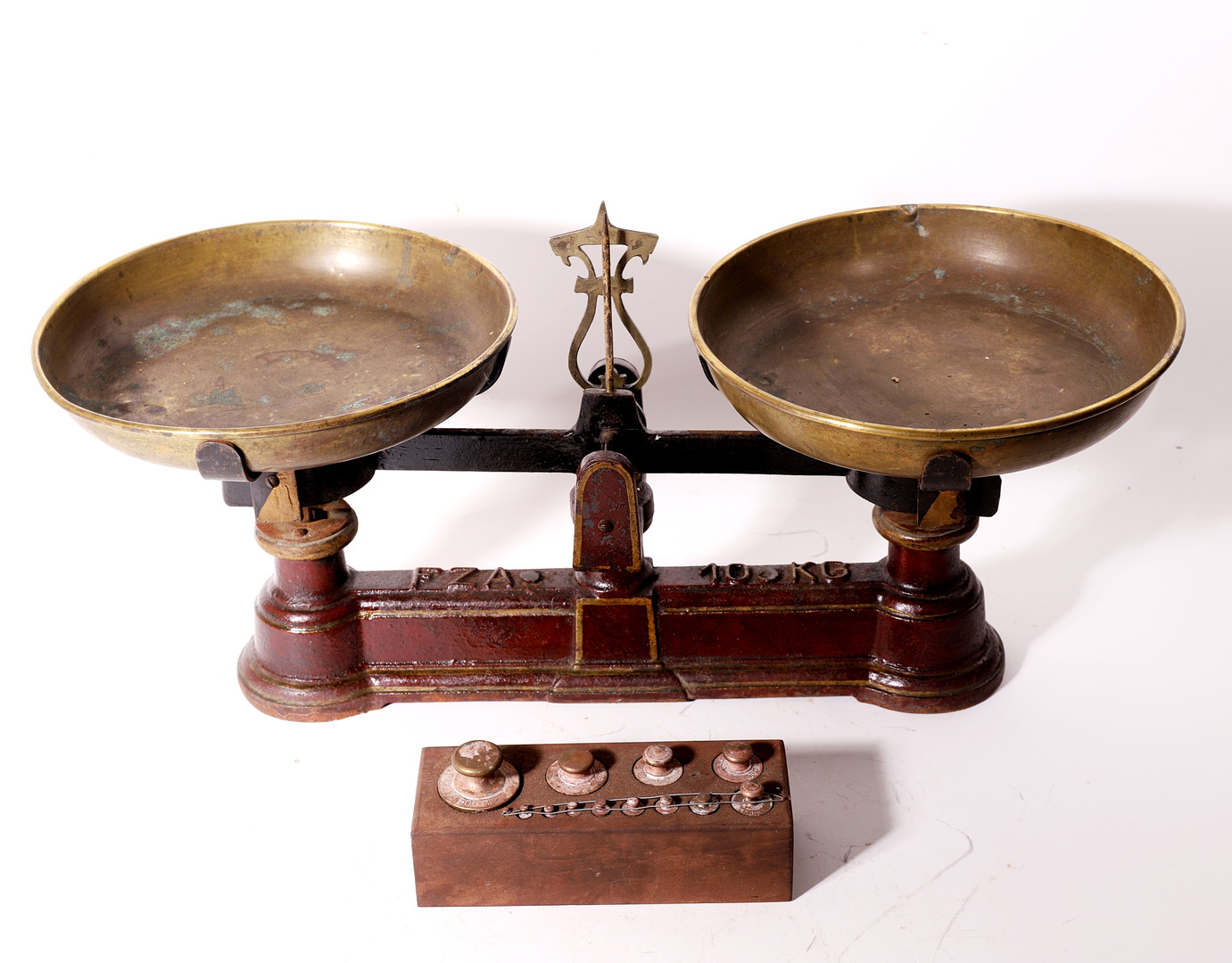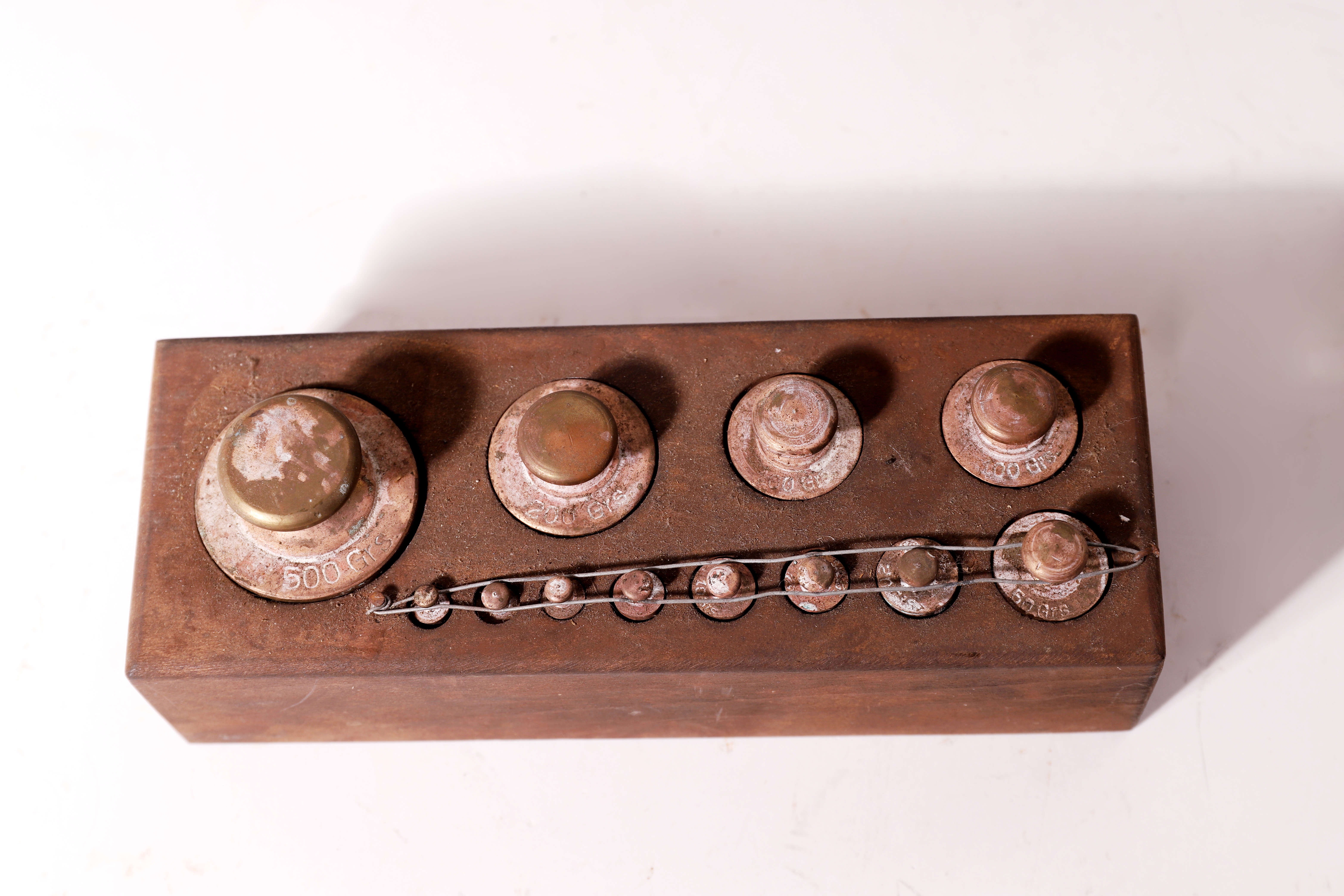 2362973. ALTE WAAGE MIT SEINEN GEWICHTEN.