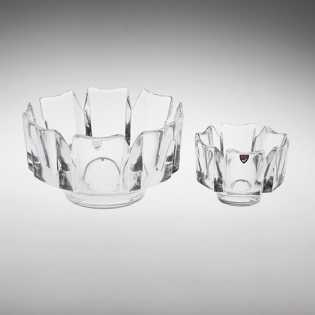 236300. SCHÜSSEL, 2 Stück "Corona" Orrefors.