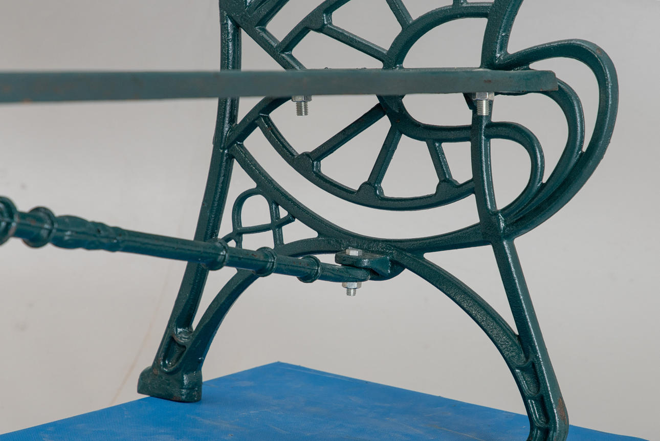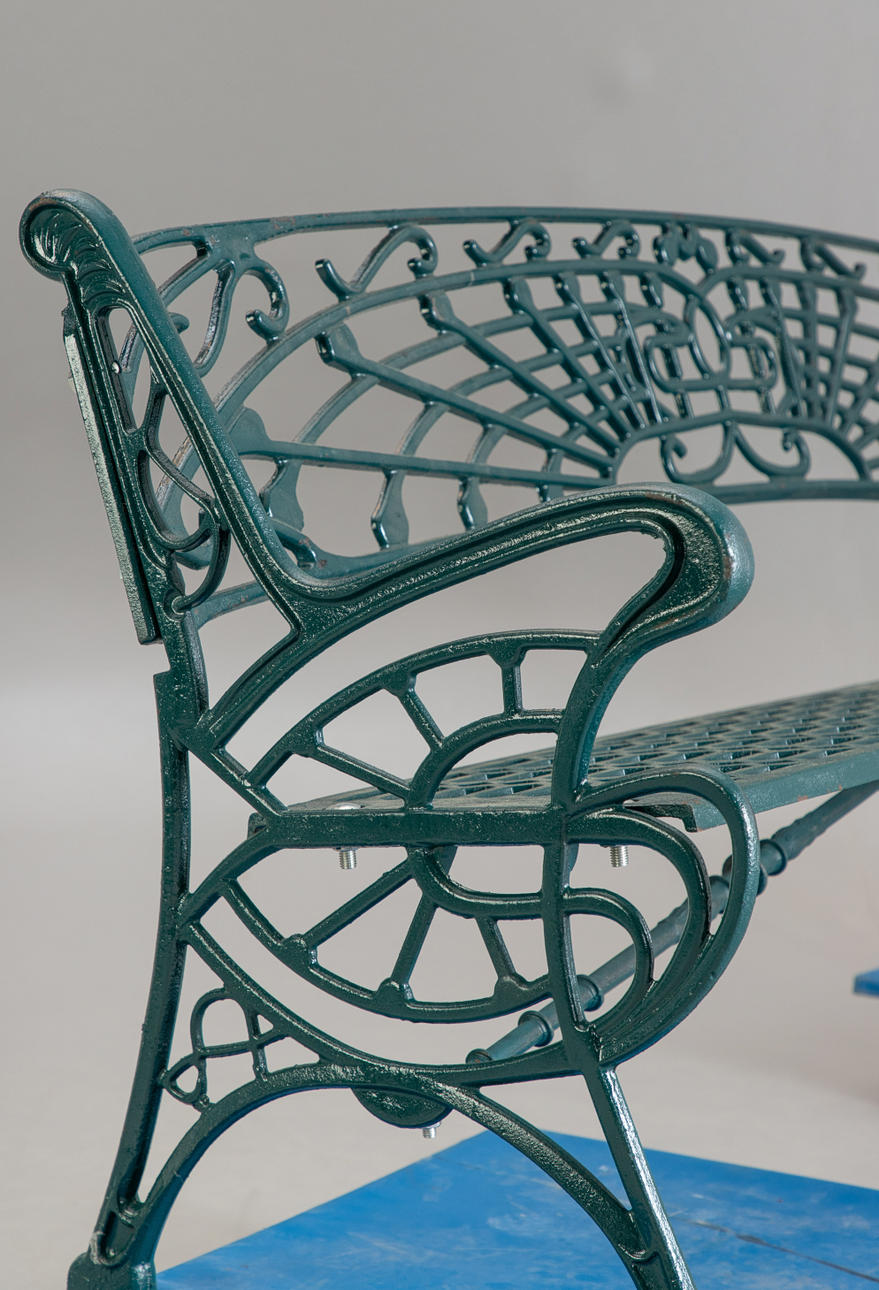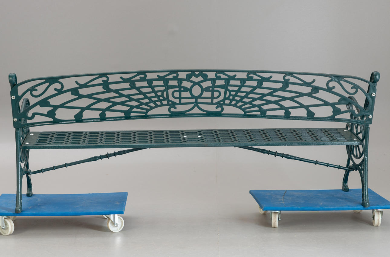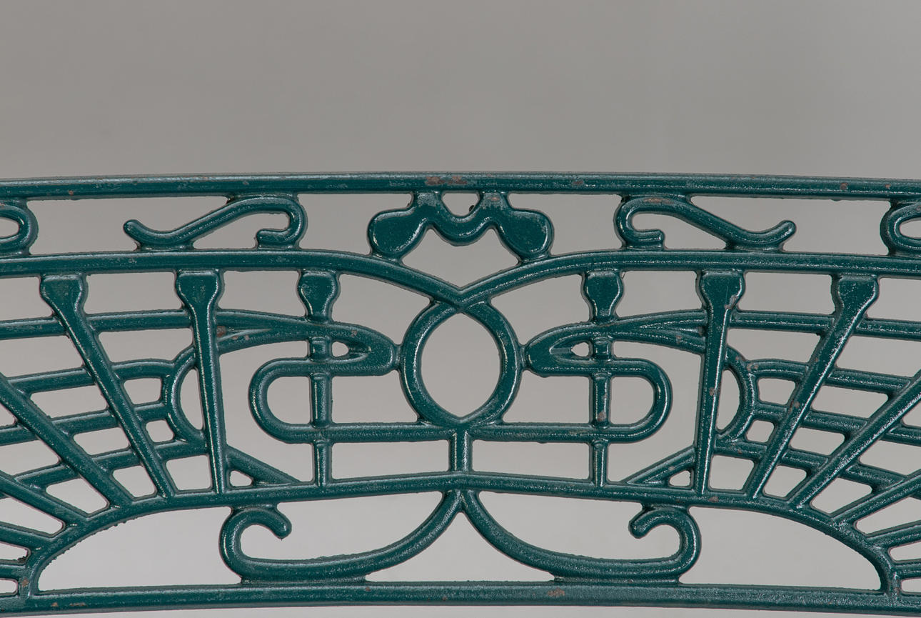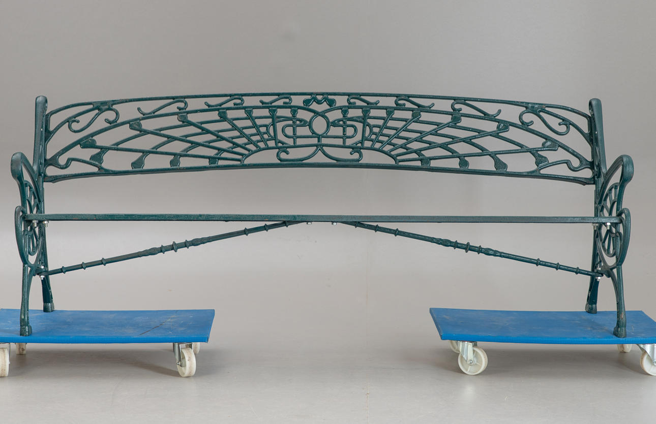 Gartenbank im Jugendstil, Gusseisen, Lackierung im sog. "English Green".