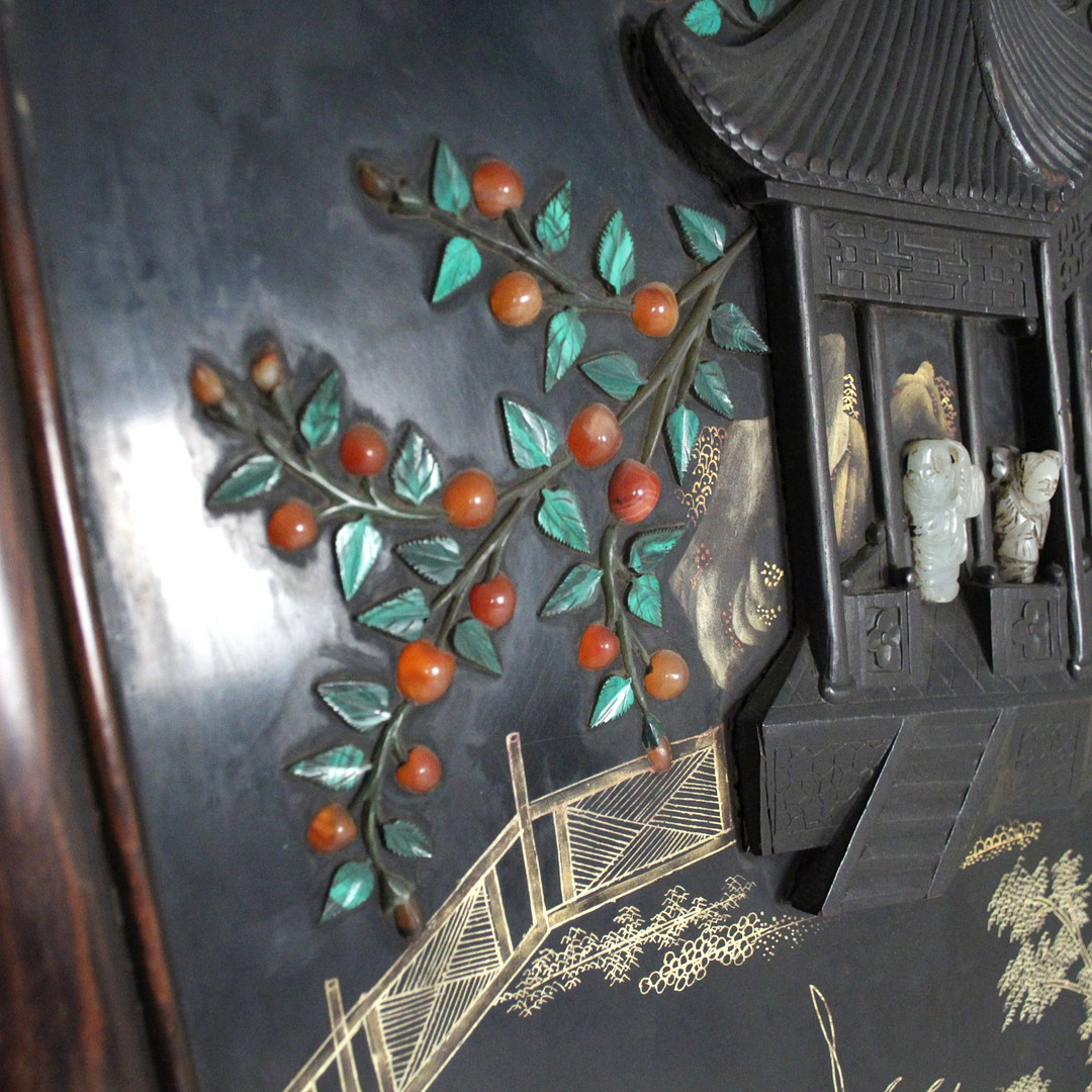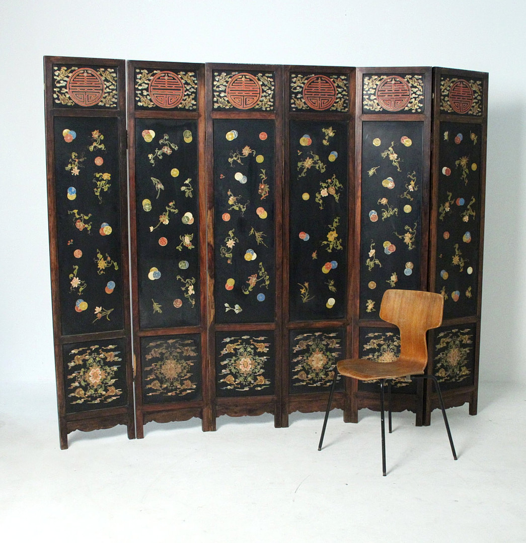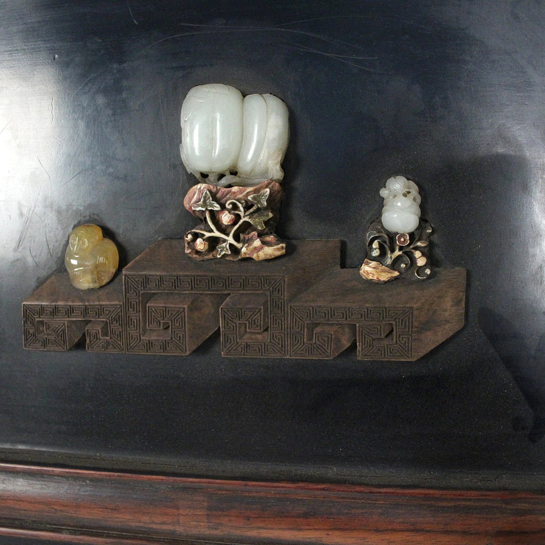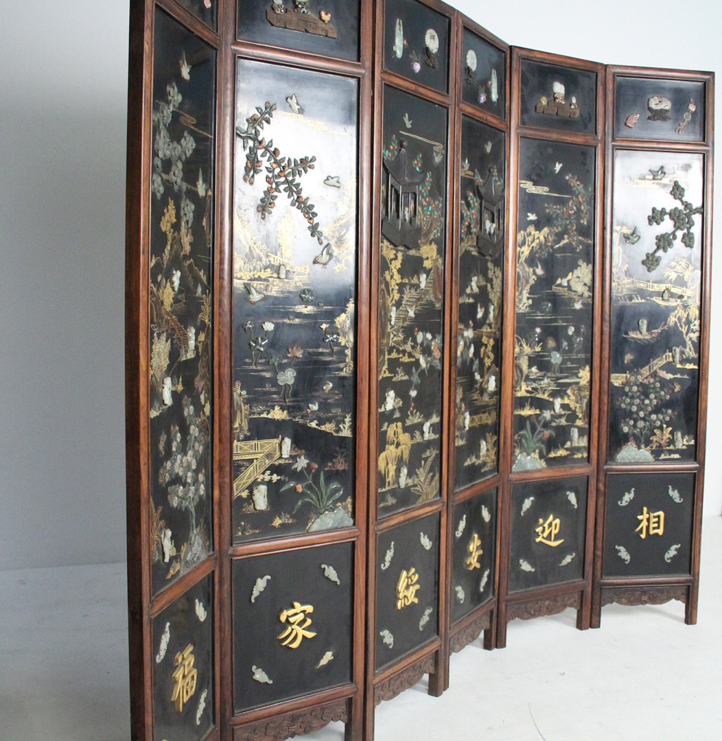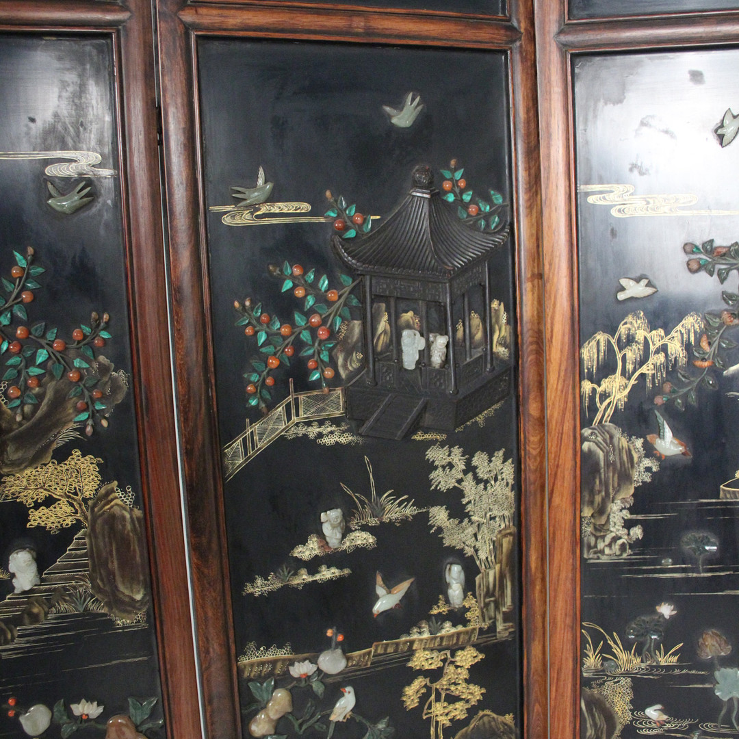 2365929. Chinesischer Paravent mit Jadestein & Karneol.