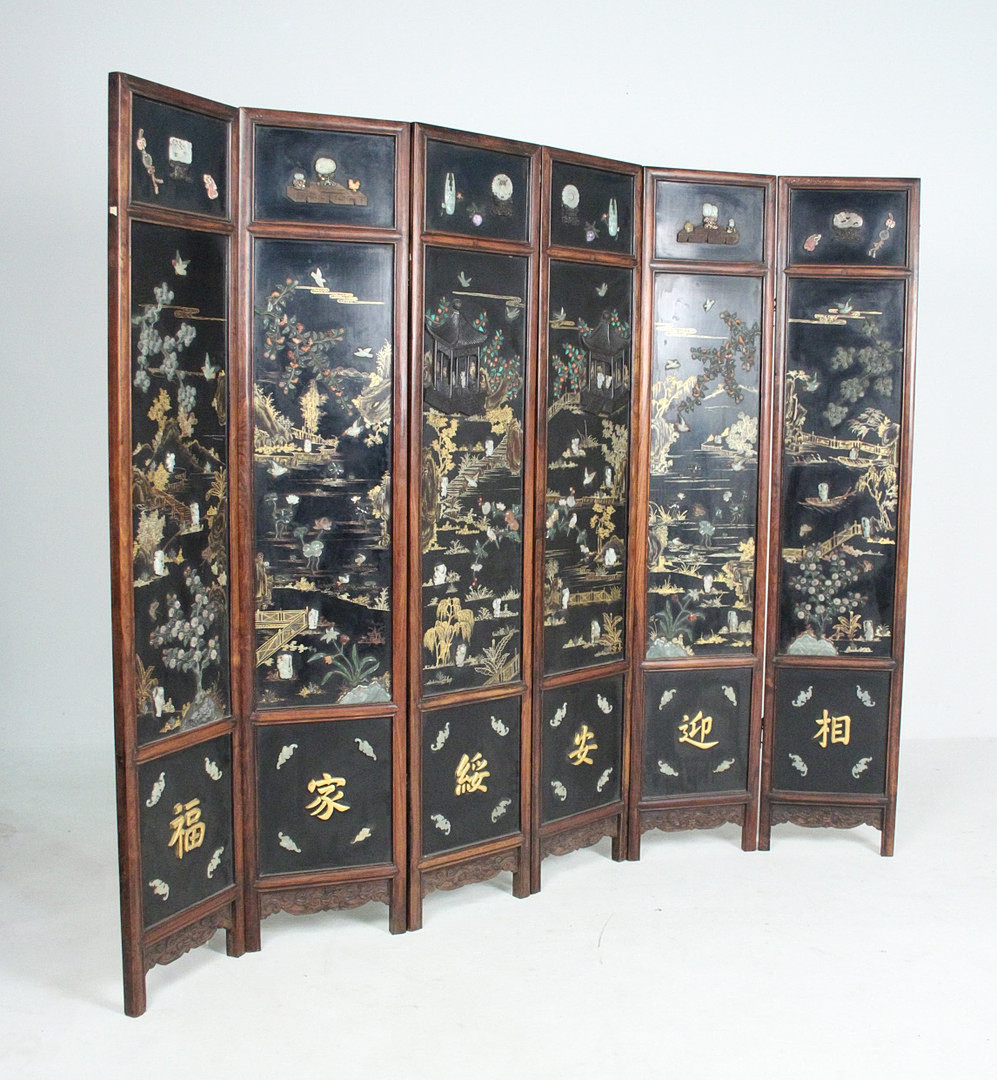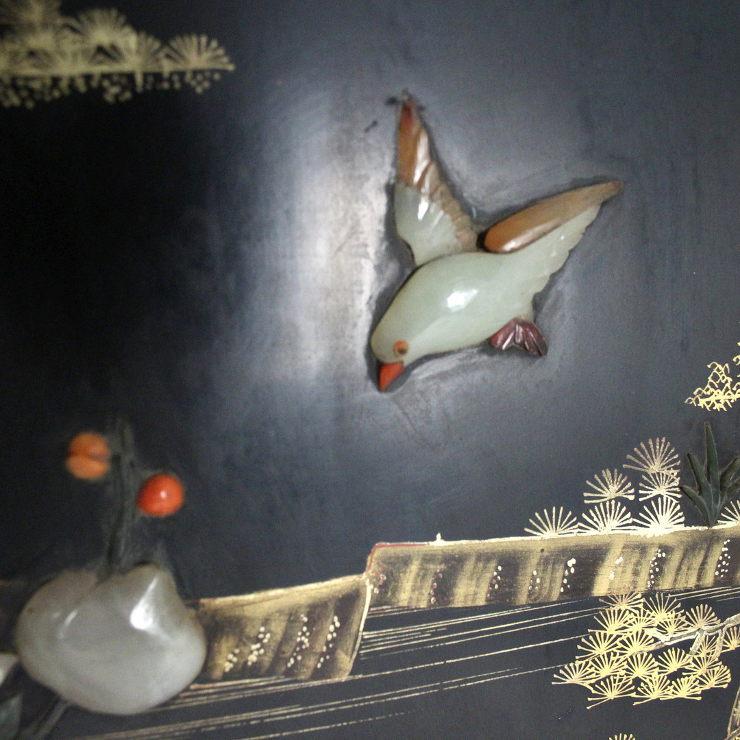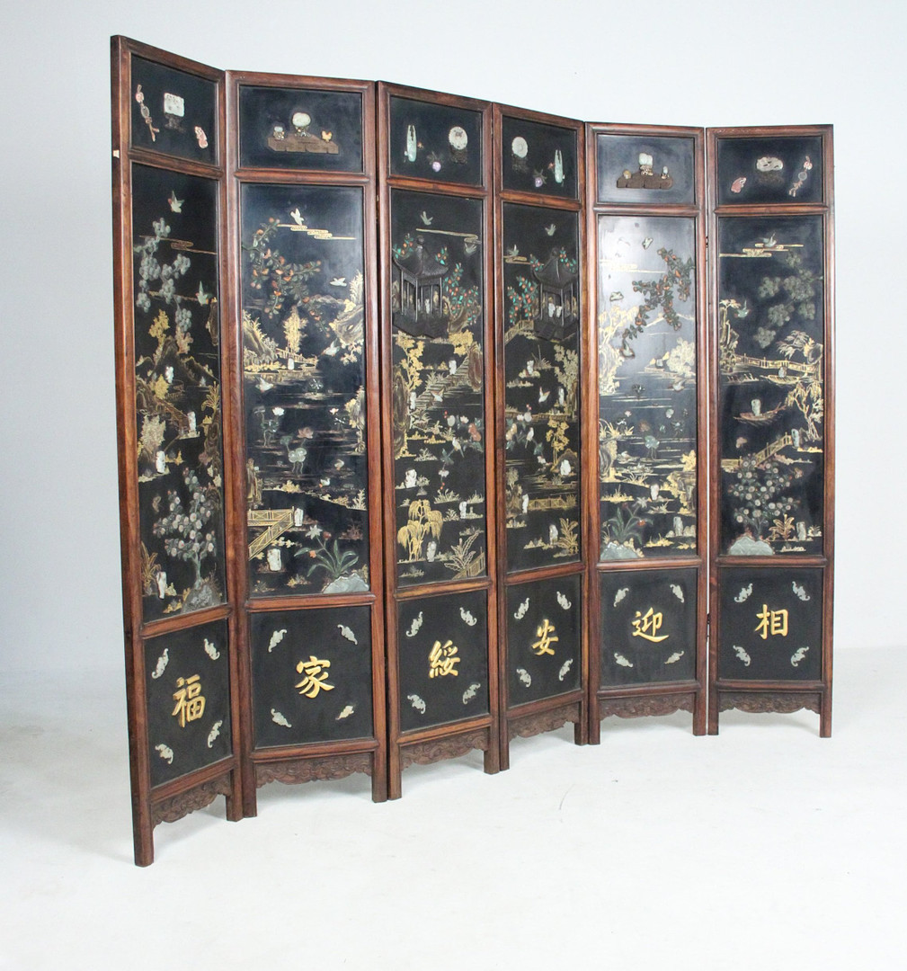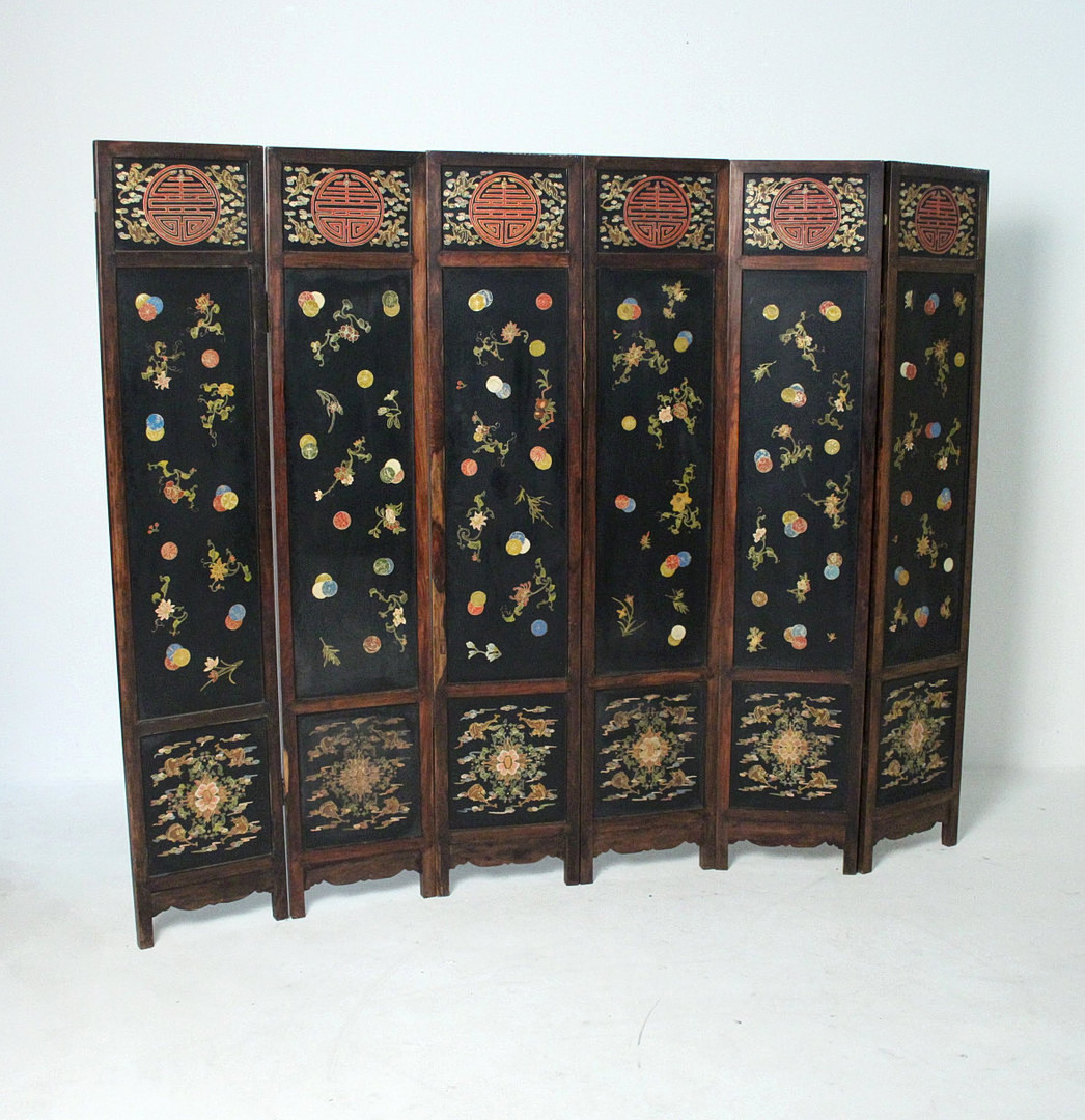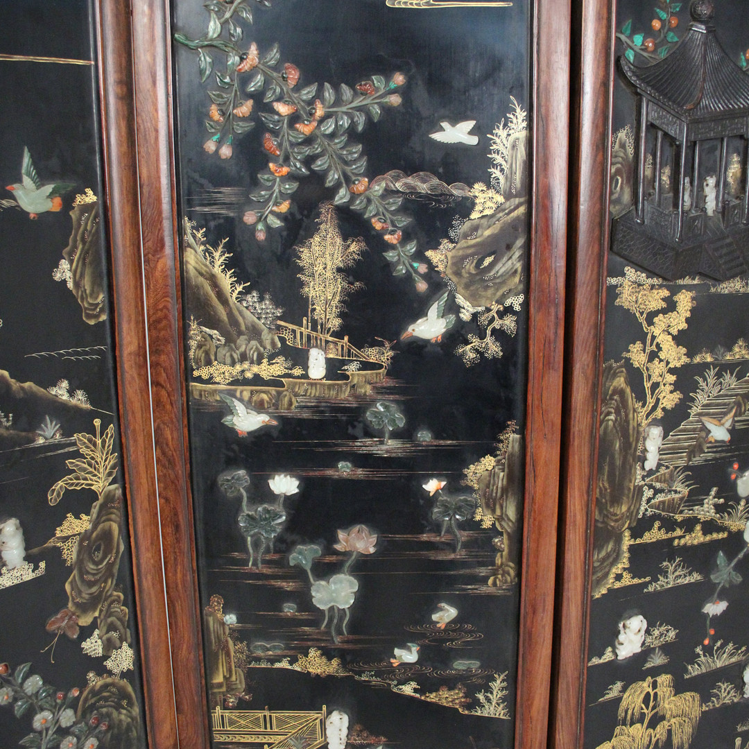 2365929. Chinesischer Paravent mit Jadestein & Karneol.