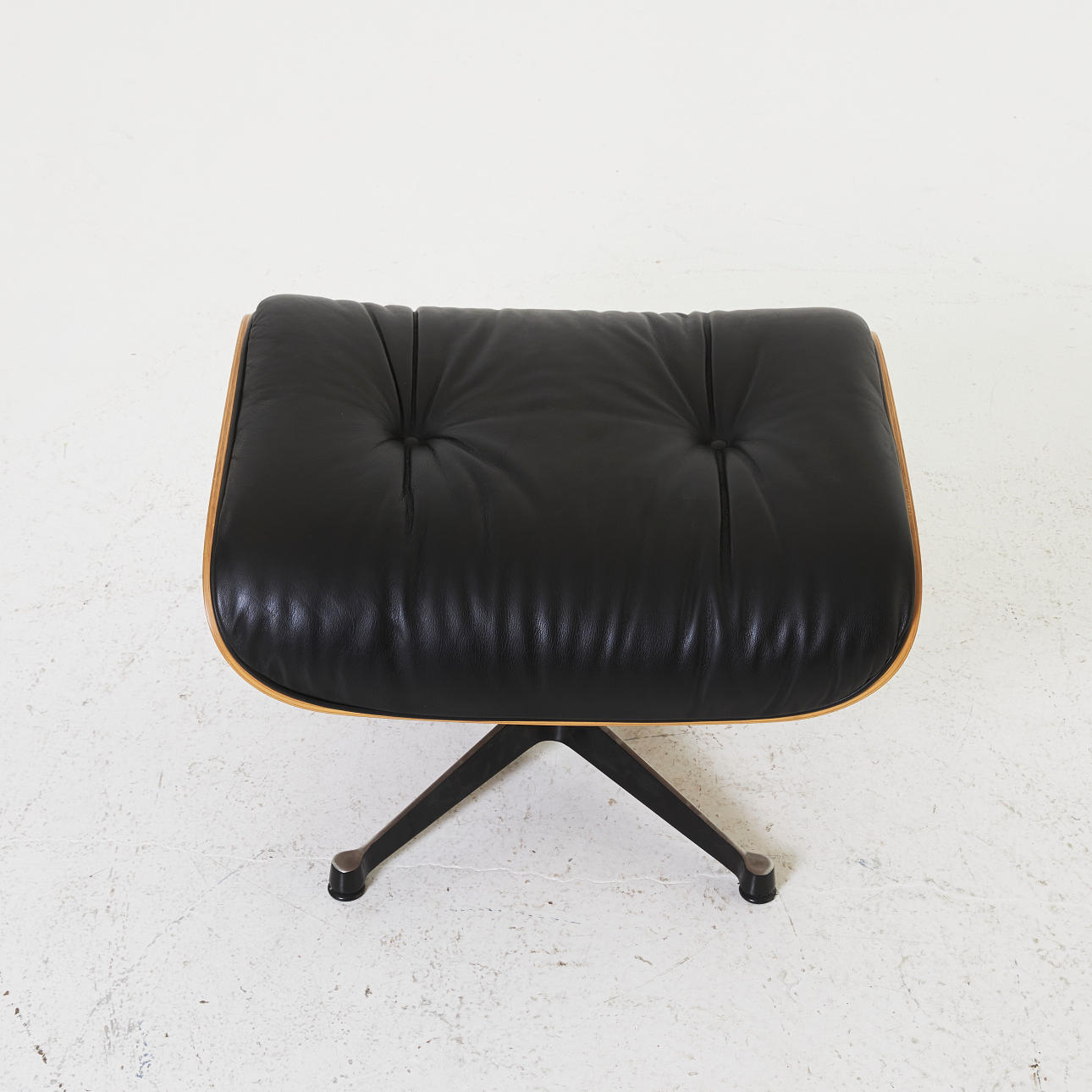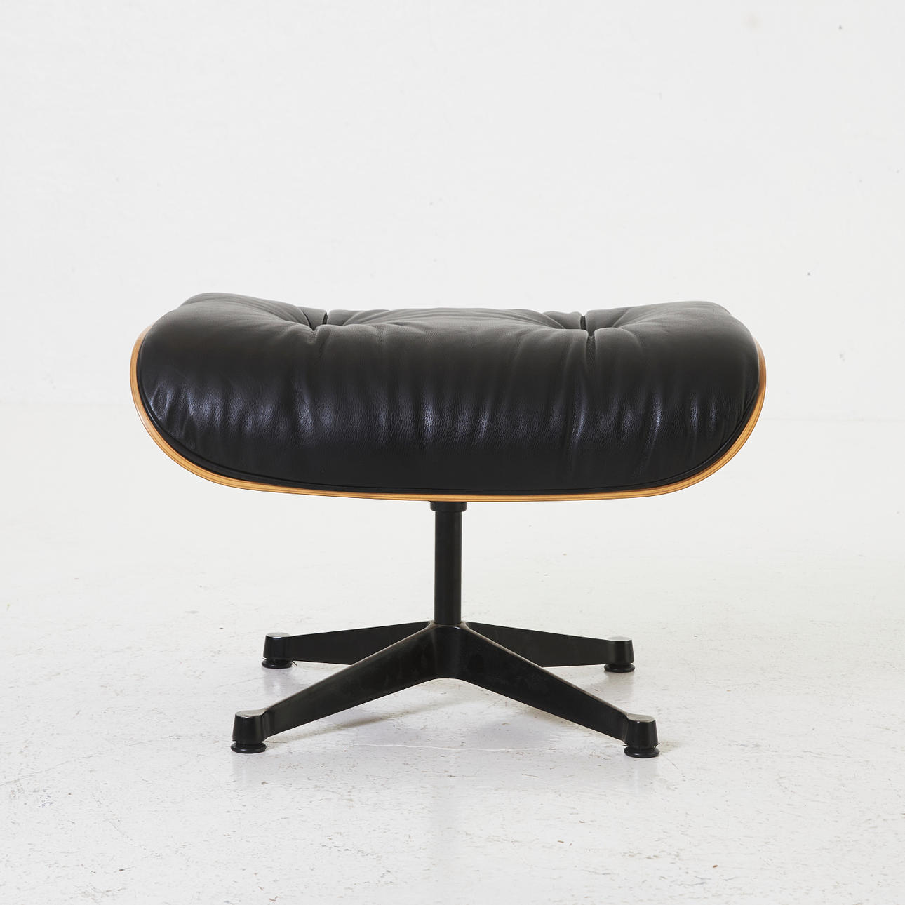2368049. Charles & Ray Eames Hocker, weiß, schwarzes Leder.